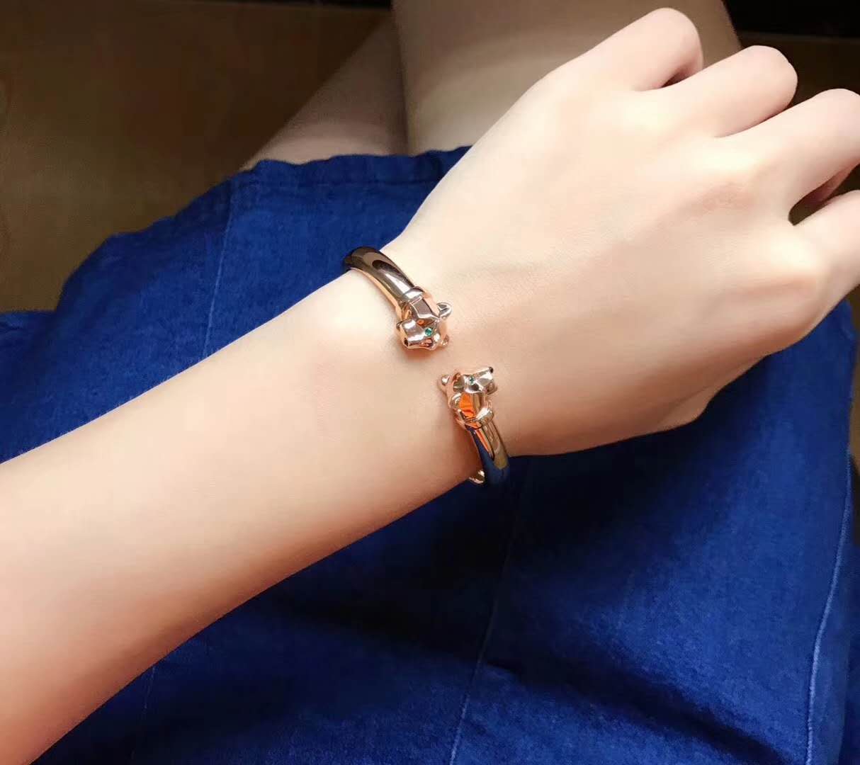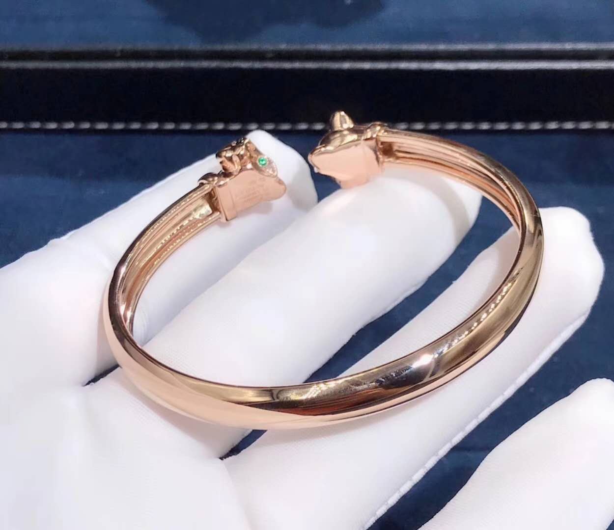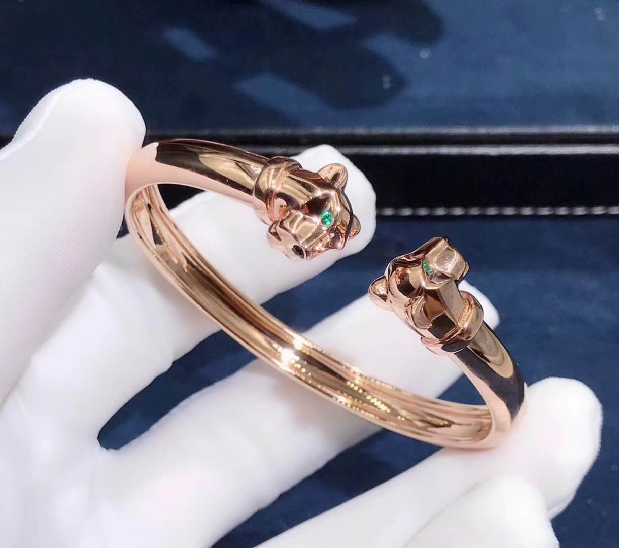 Get your own at an extremely low direct factory selling price. If you are interested in this 18K pink gold Panthère de Cartier bracelet set with tsavorite garnets and onyx, Please contact us via the contact form below: