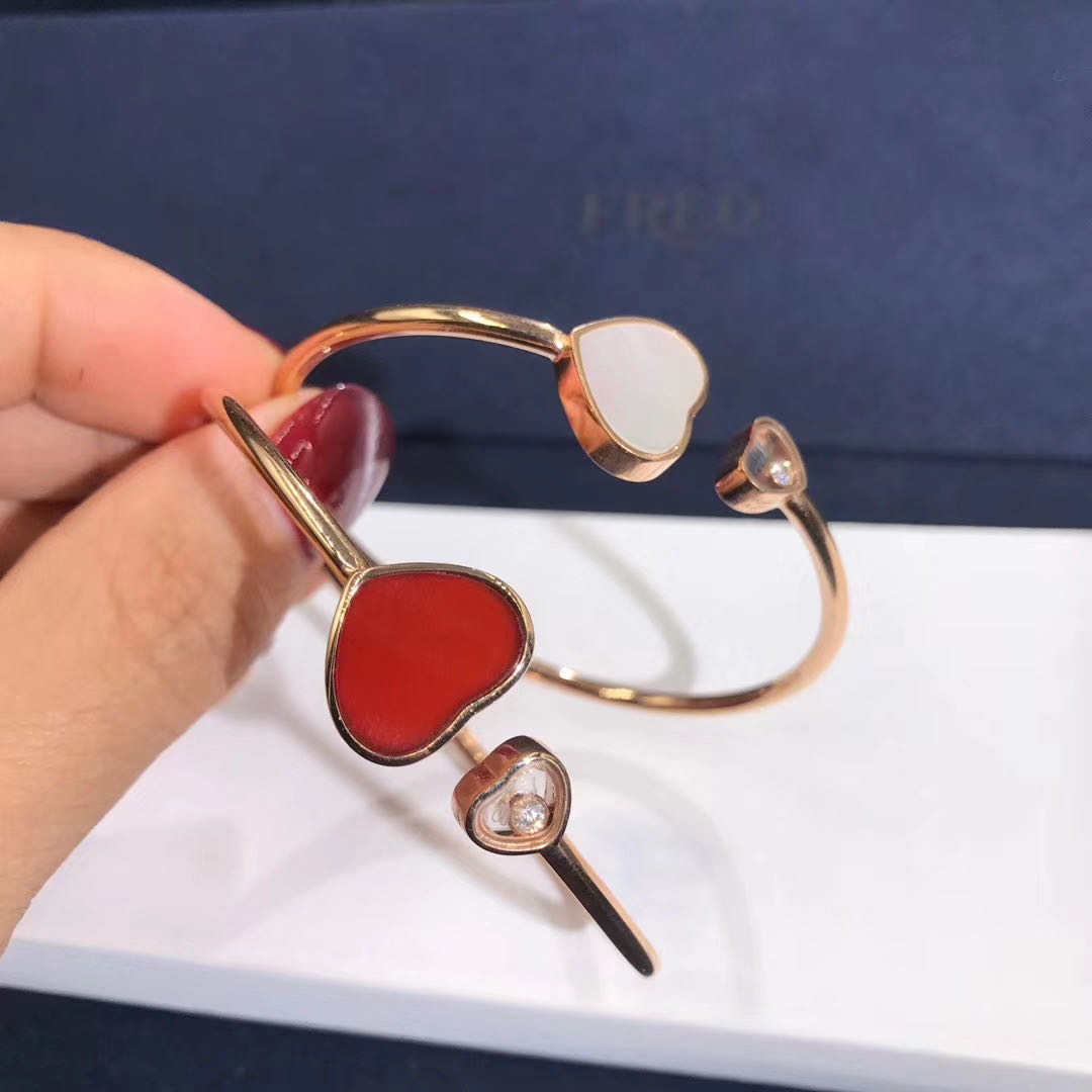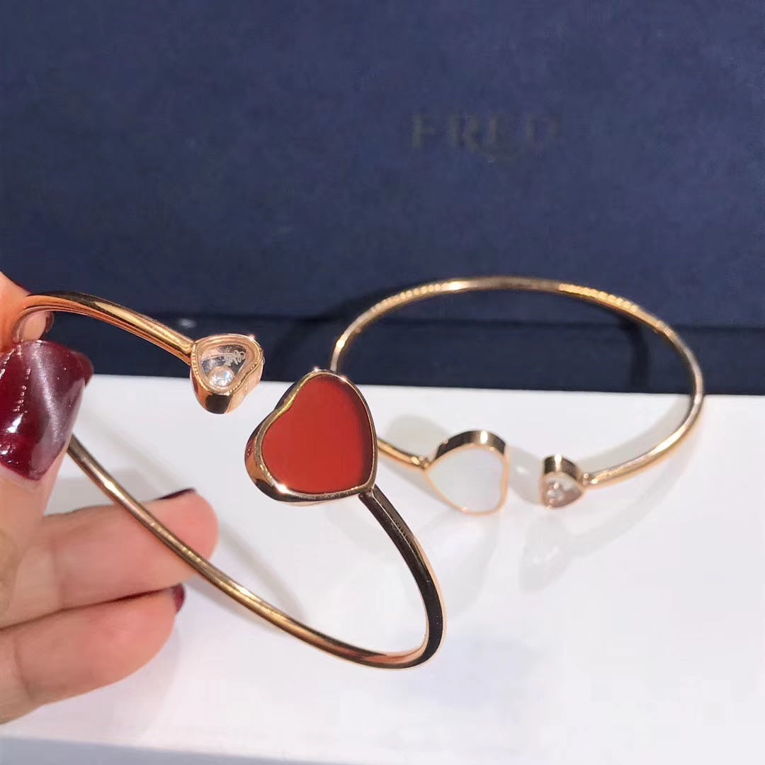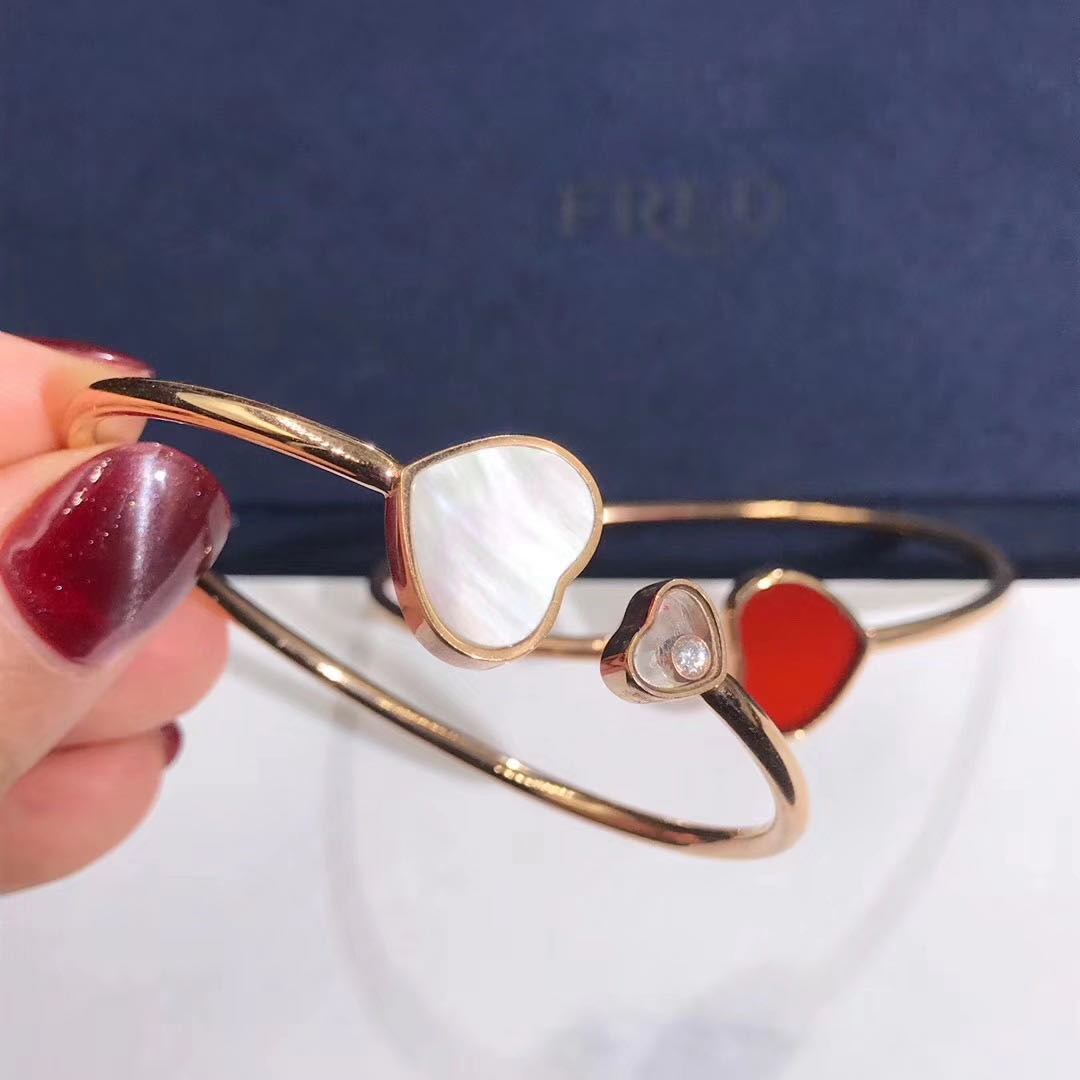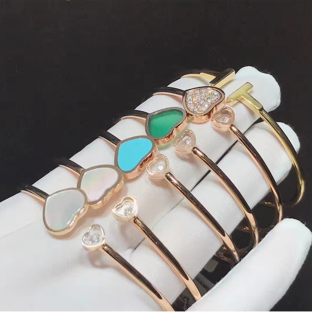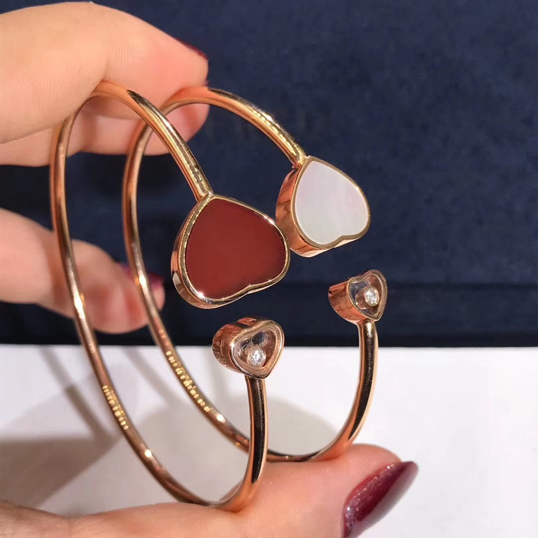 18k Rose Gold Chopard Happy Hearts Gems and Diamond Bangle Bracelet
