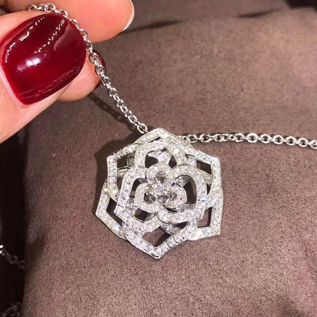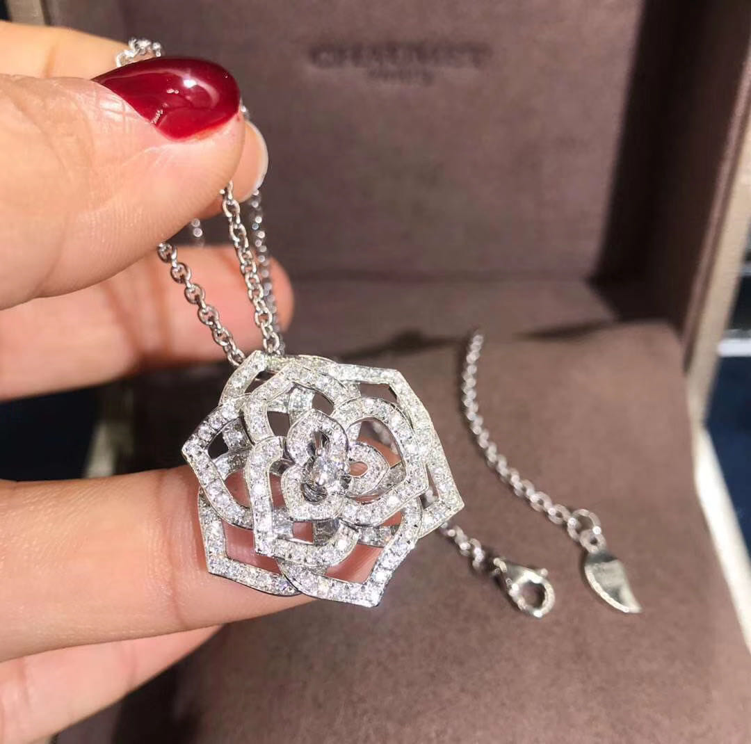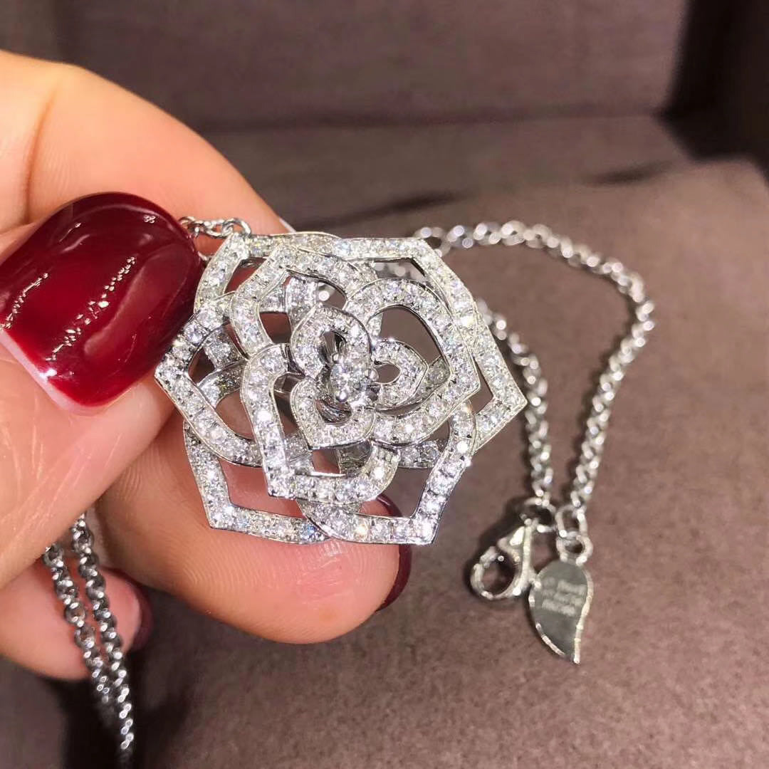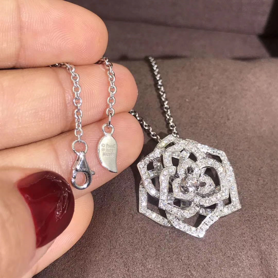 18K White Gold Piaget Diamond Openwork Rose Motif Necklace