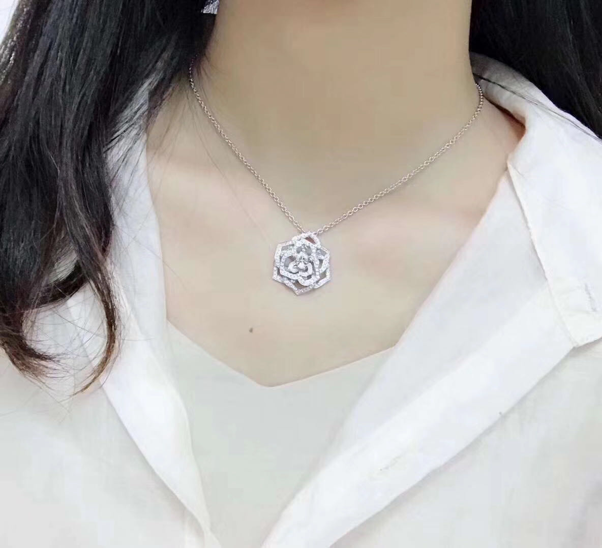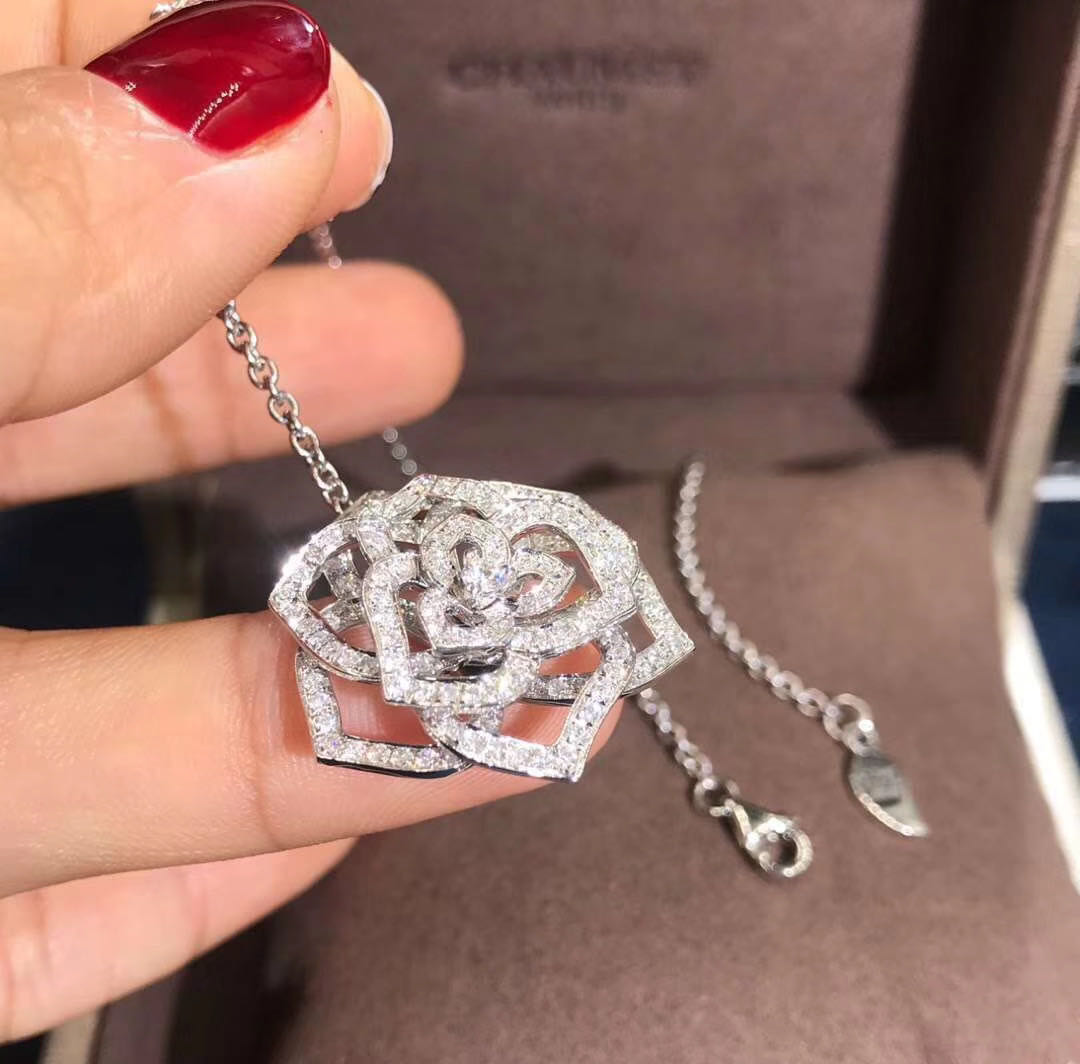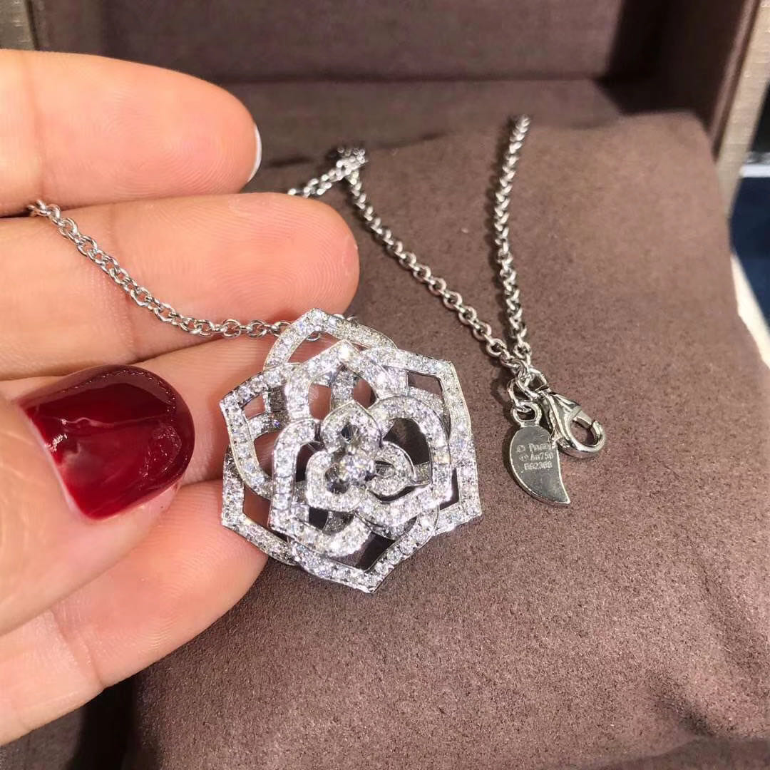 18K White Gold Piaget Diamond Openwork Rose Motif Necklace