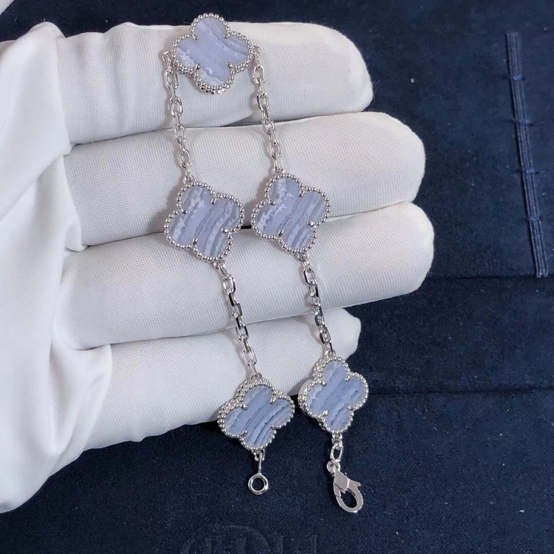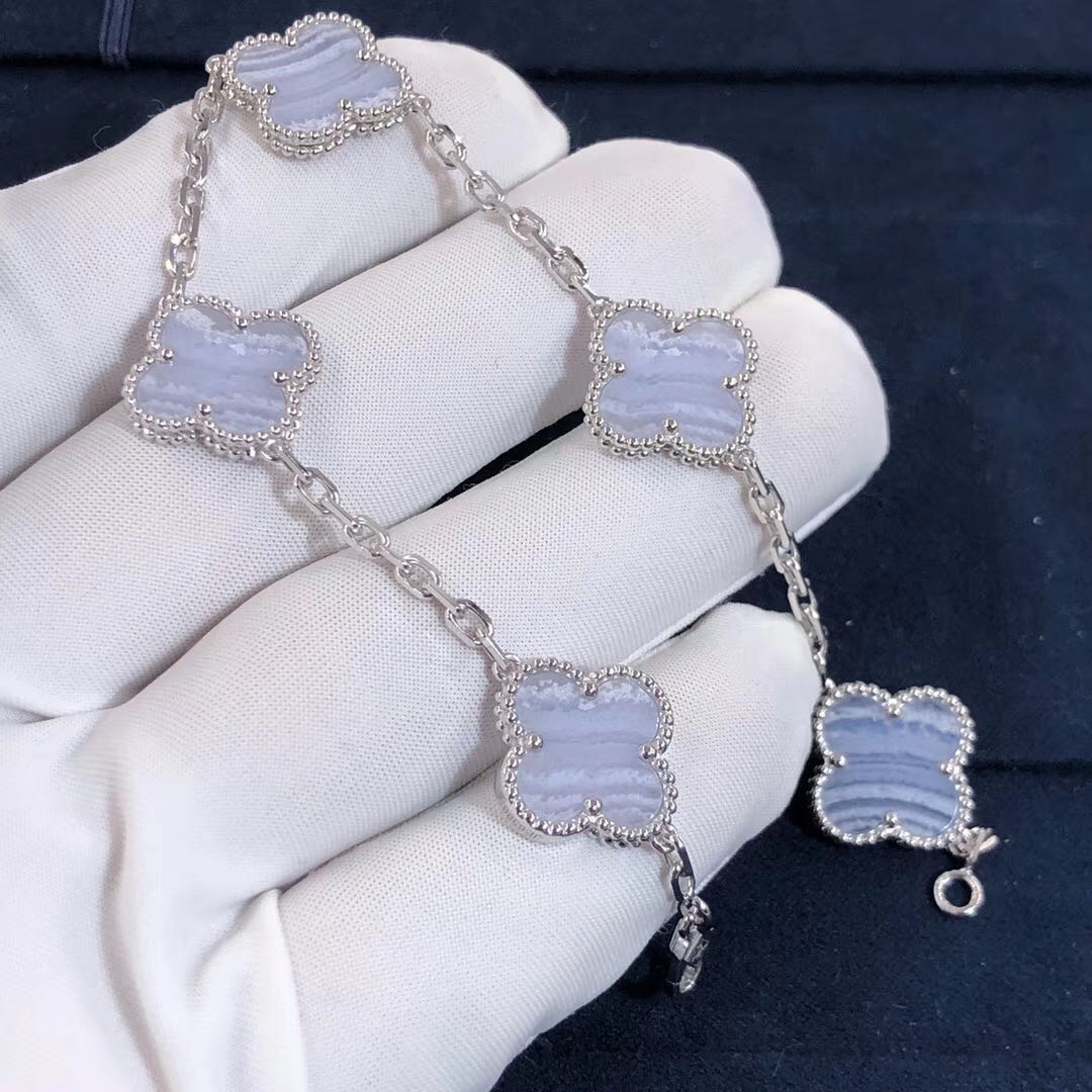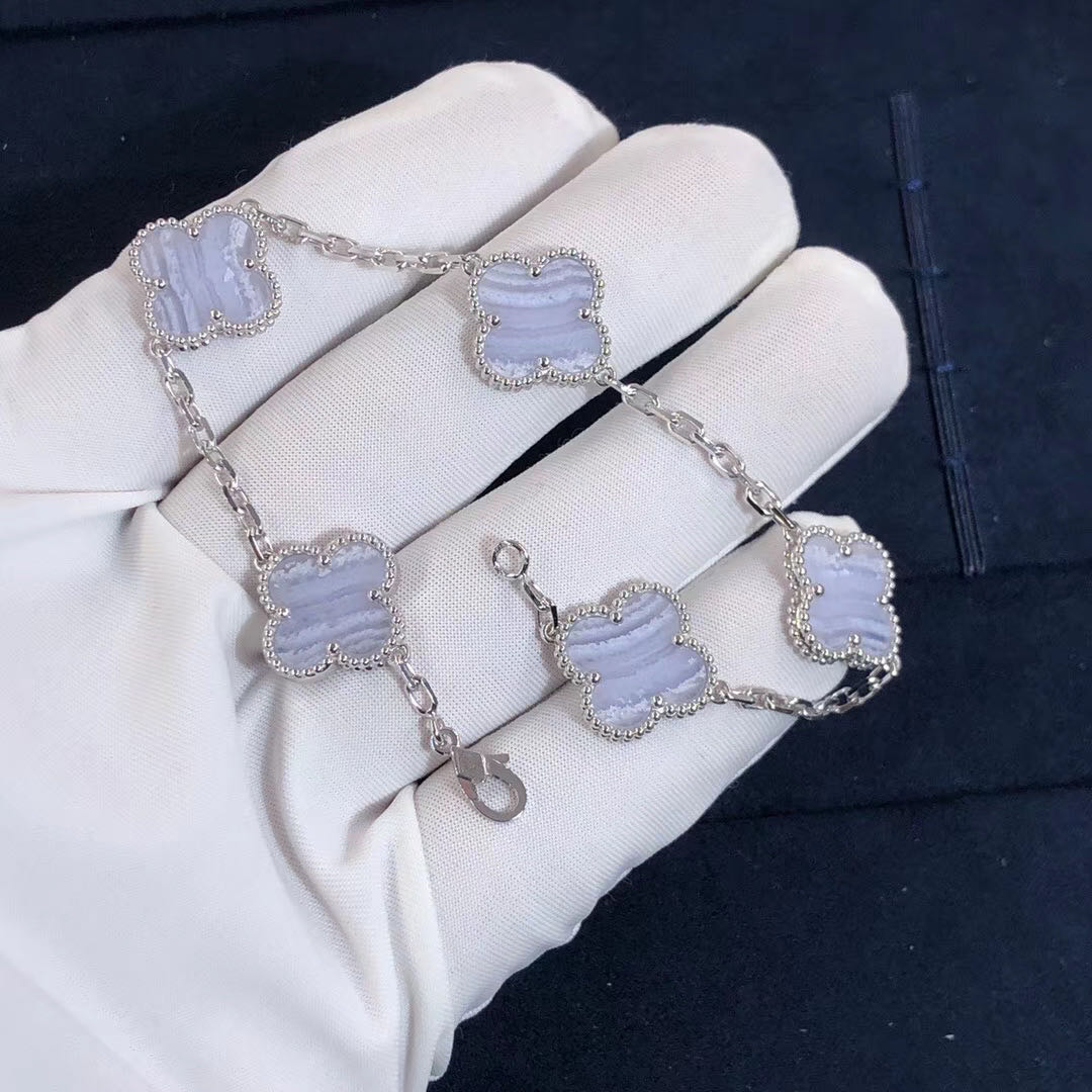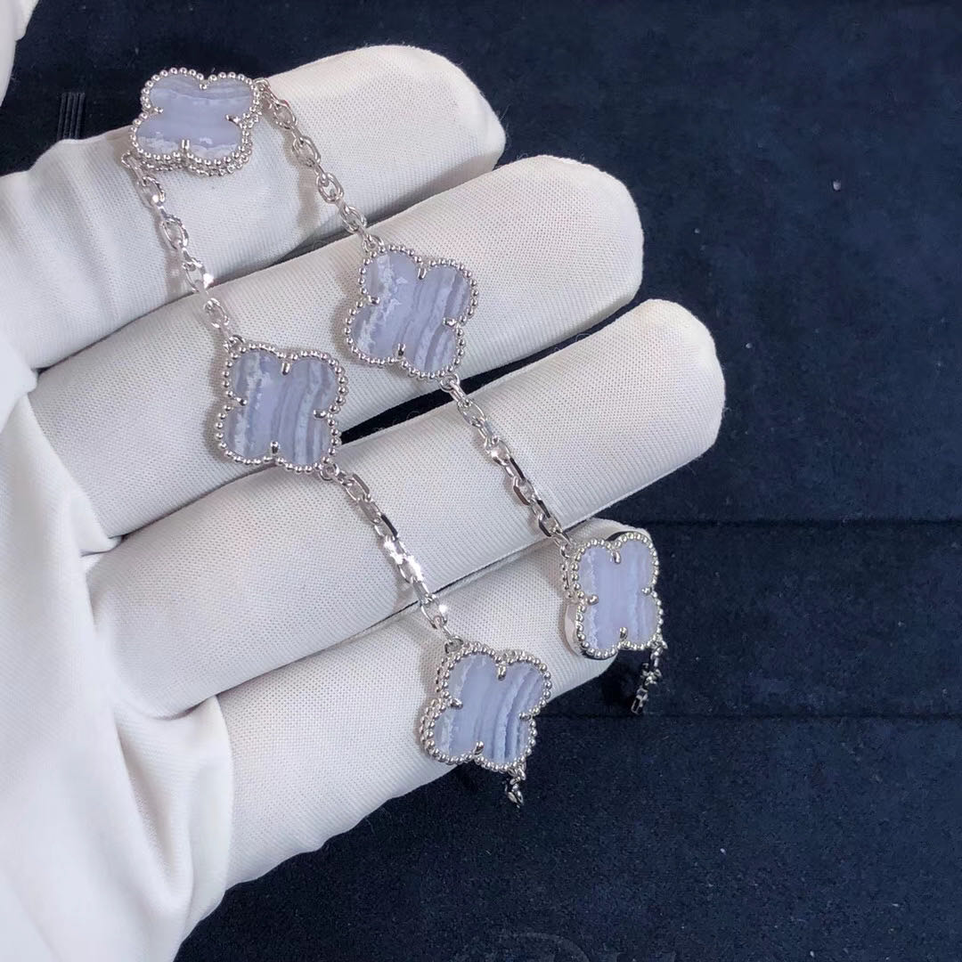 18k White Gold Van Cleef & Arpels Vintage Alhambra 5-Motif Chalcedony Bracelet VCARD34700