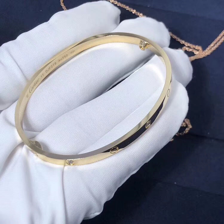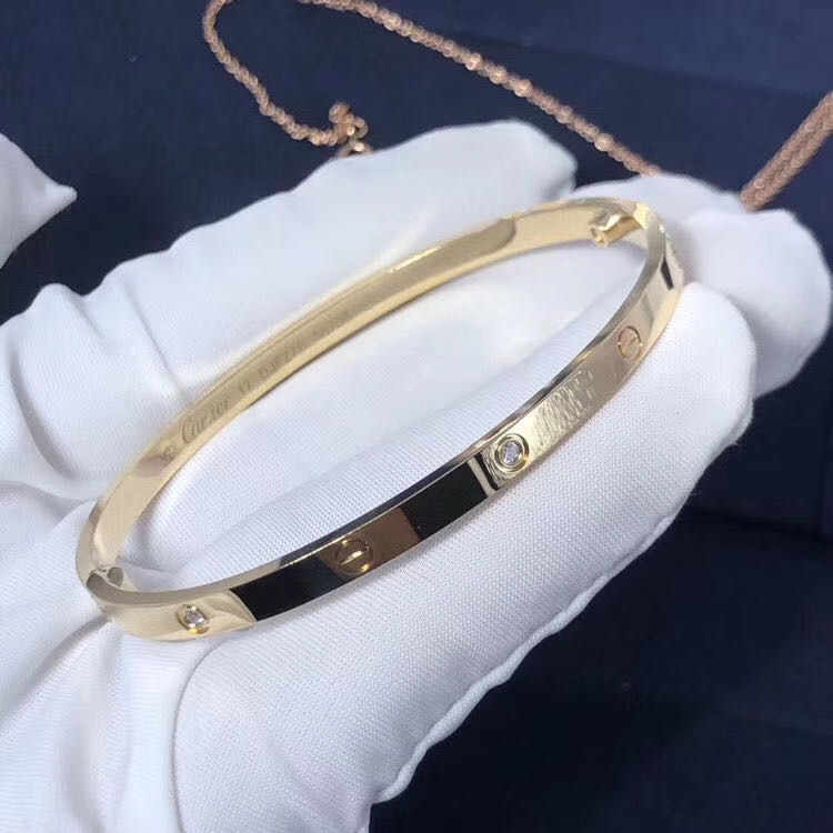 Real 18k gold and GIA diamond guaranteed. Top workmanship and factory direct selling. If you are interested in 18K Yellow Cartier Love Bracelet Small Model 6 Diamonds, please leave your message below or talk us via Whatsapp +1 (920)-557-4714.
