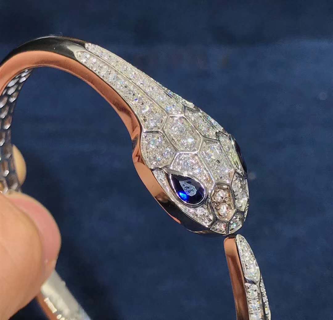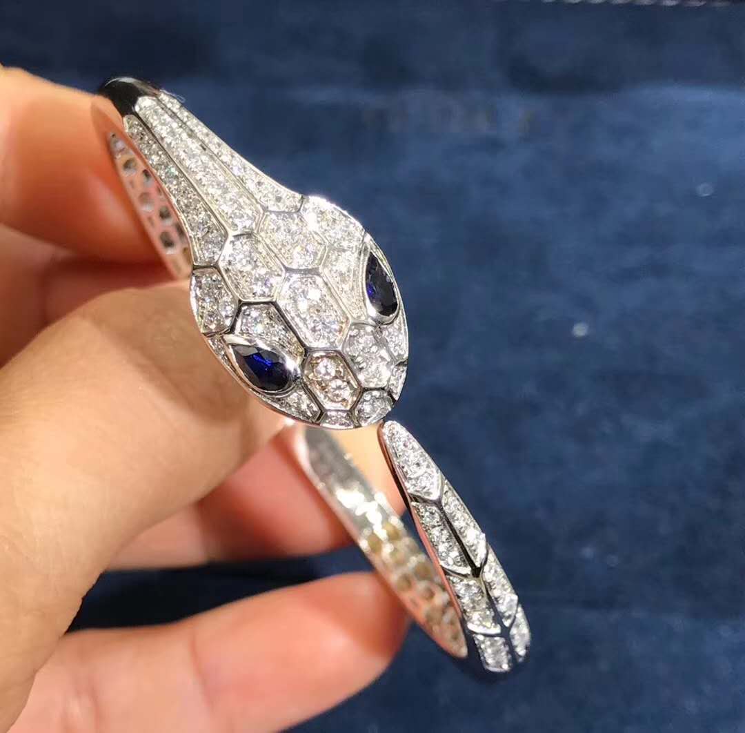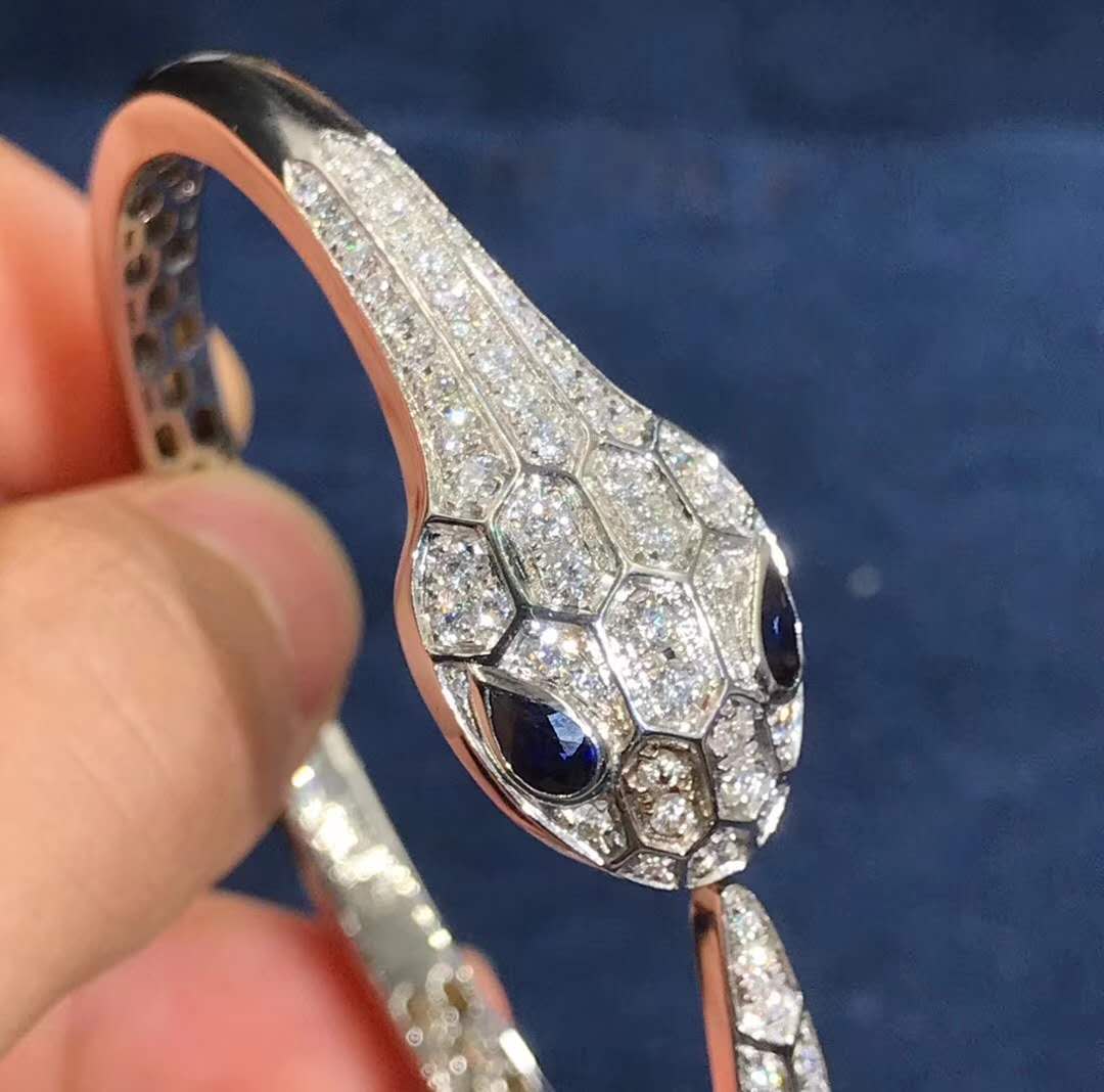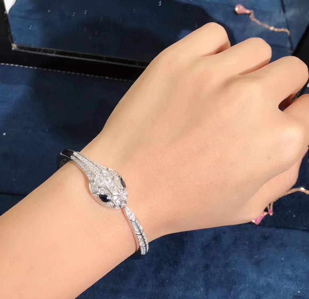 Capturing the power of attraction, the Serpenti bracelet glorifies the head of the snake in a jeweled design that sparkles with glamour and sophistication. Inspired by the sensuality of a woman’s gaze, Bulgari reinterprets its spirit animal, focusing on the magnetic power of the eyes and channeling their irresistible ability to seduce.