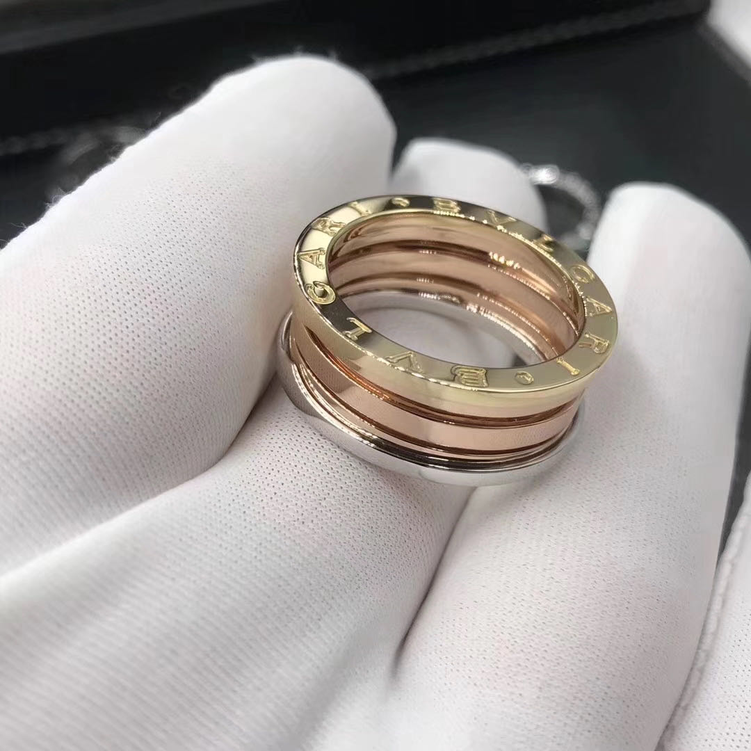 Bvlgari B.zero1 four-band ring in 18 kt rose, white and yellow gold.