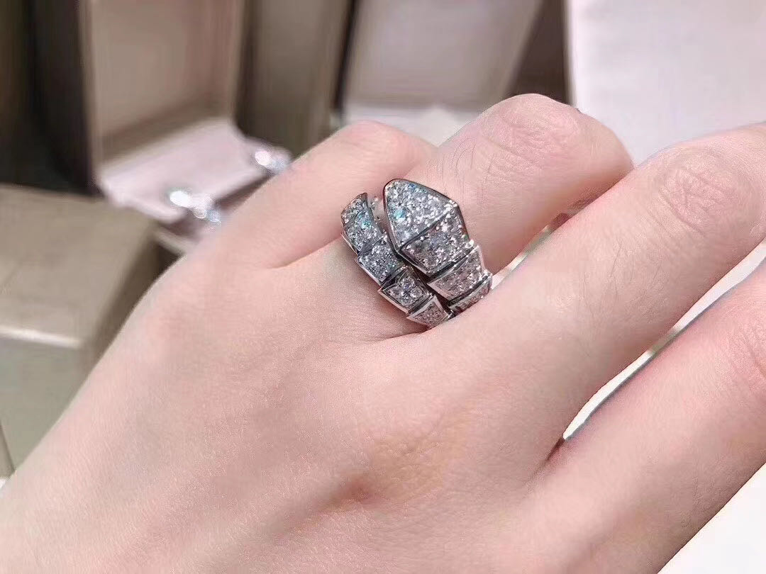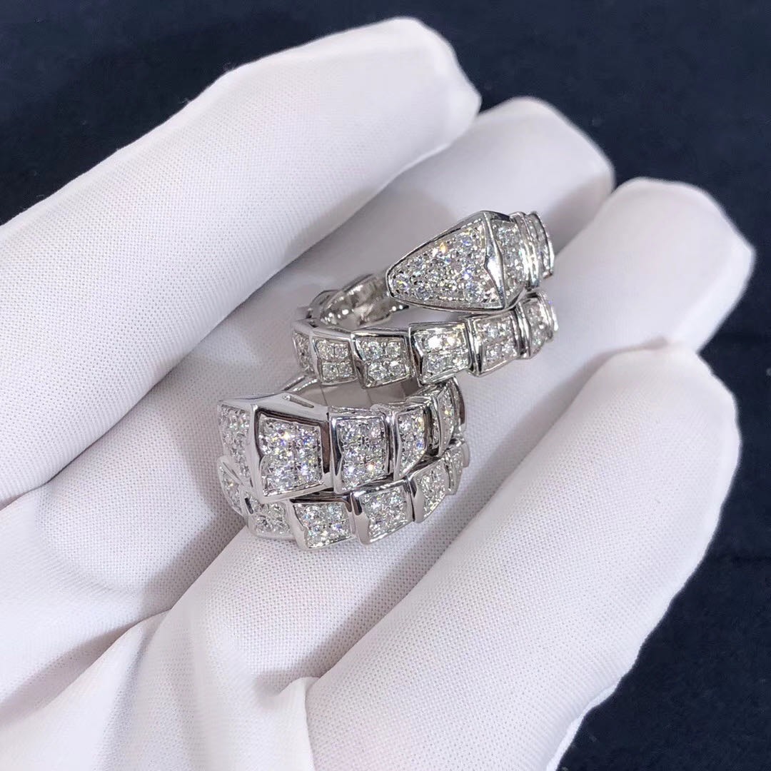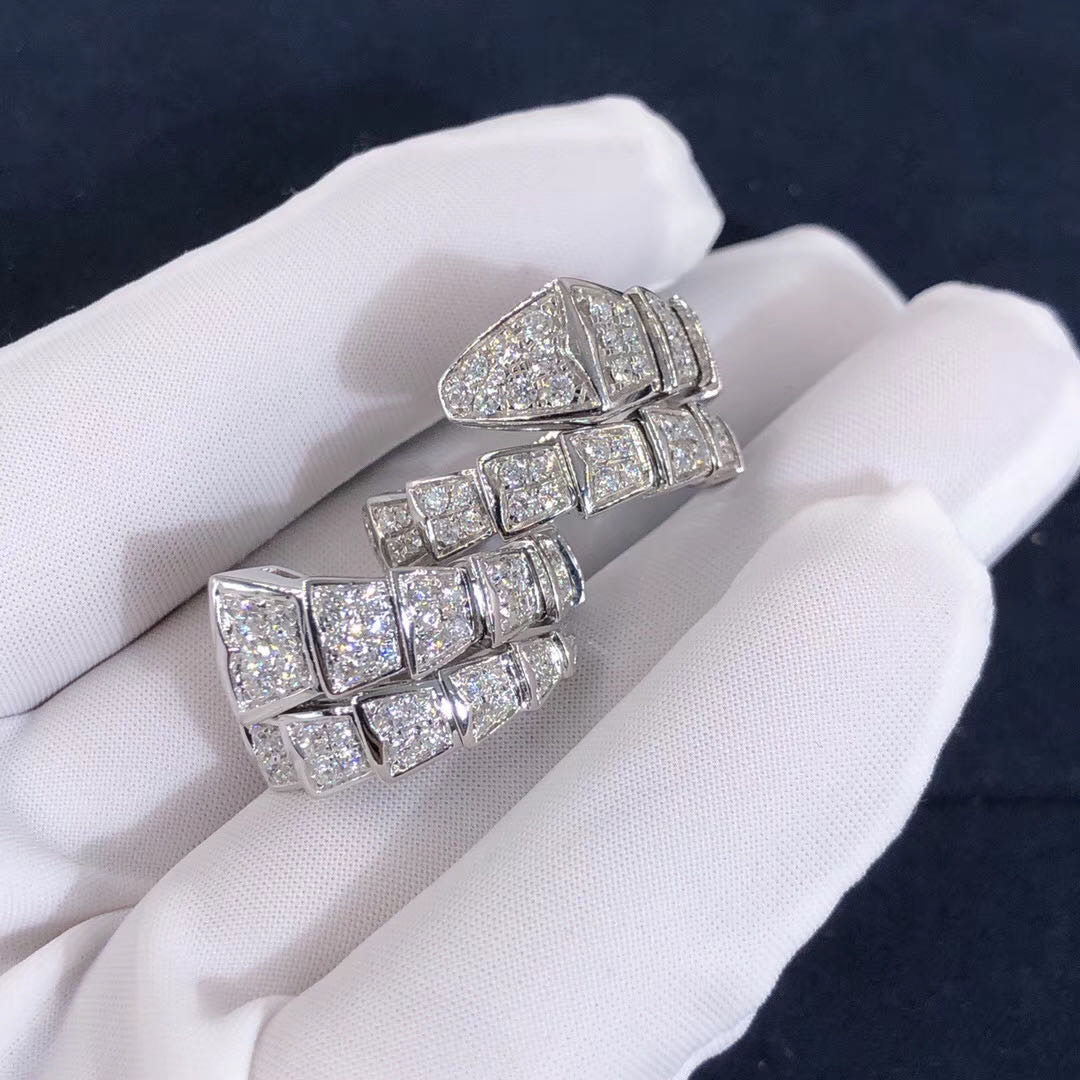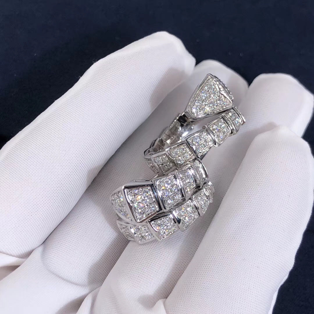 Bvlgari Serpenti 18kt white gold ring with full pavé diamonds.