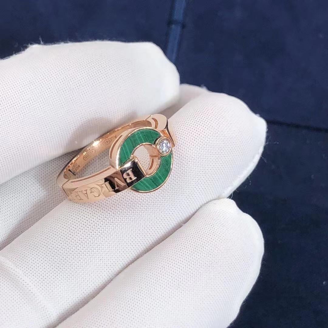 BVLGARI BVLGARI Openwork ring in 18 kt rose gold with malachite elements and a brilliant-cut diamond.