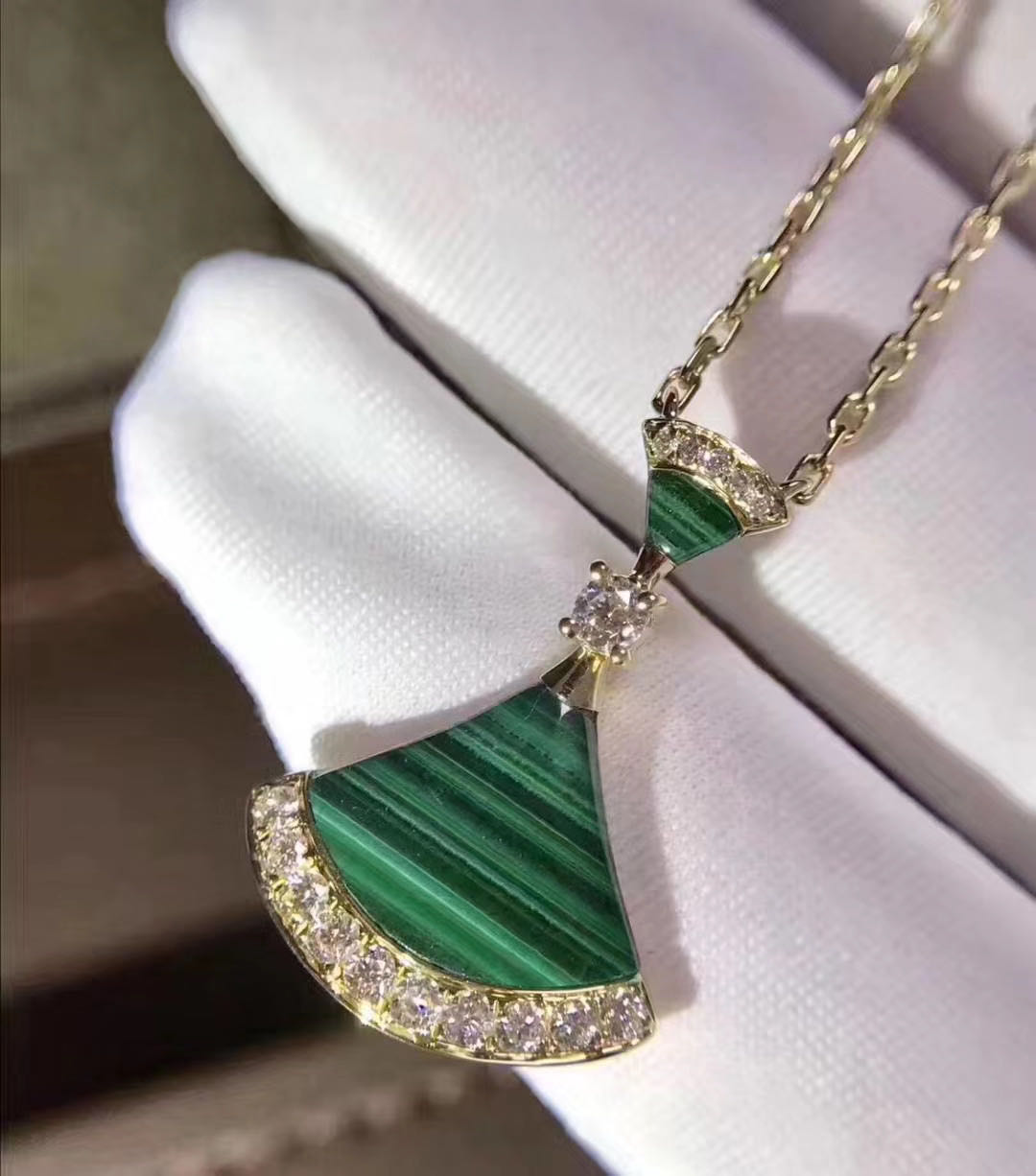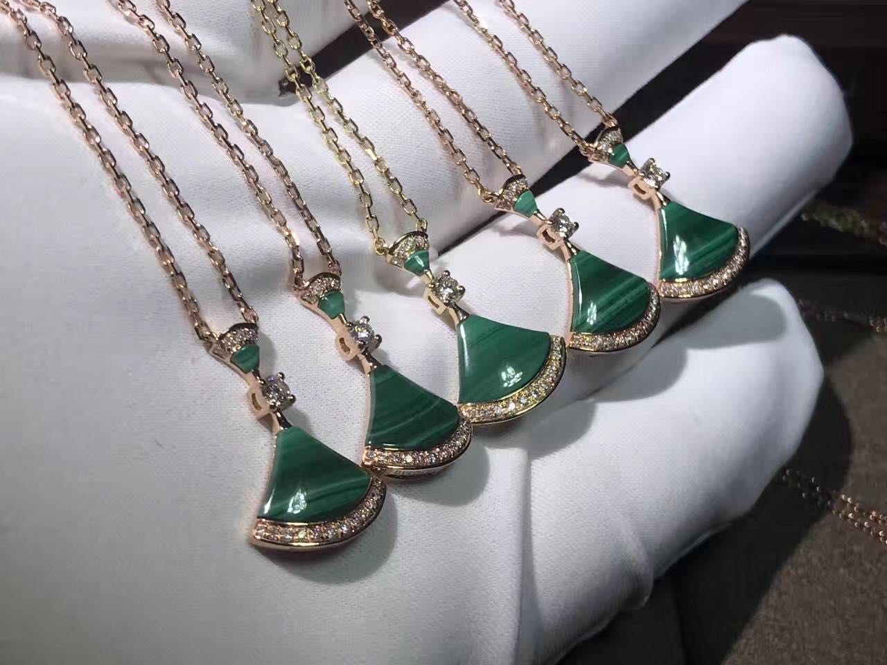 A collection inspired by the iconic divas of past and present, the Diva’s Dream necklace from Bulgari embodies gracious femininity. Capturing the magnificence of the marble and the sensual curves of the mosaics in Rome’s iconic Caracalla Baths with the fan silhouette, mother-of-pearl is delicately carved celebrating the natural allure of gemstones and is finished with a sparkling diamond.