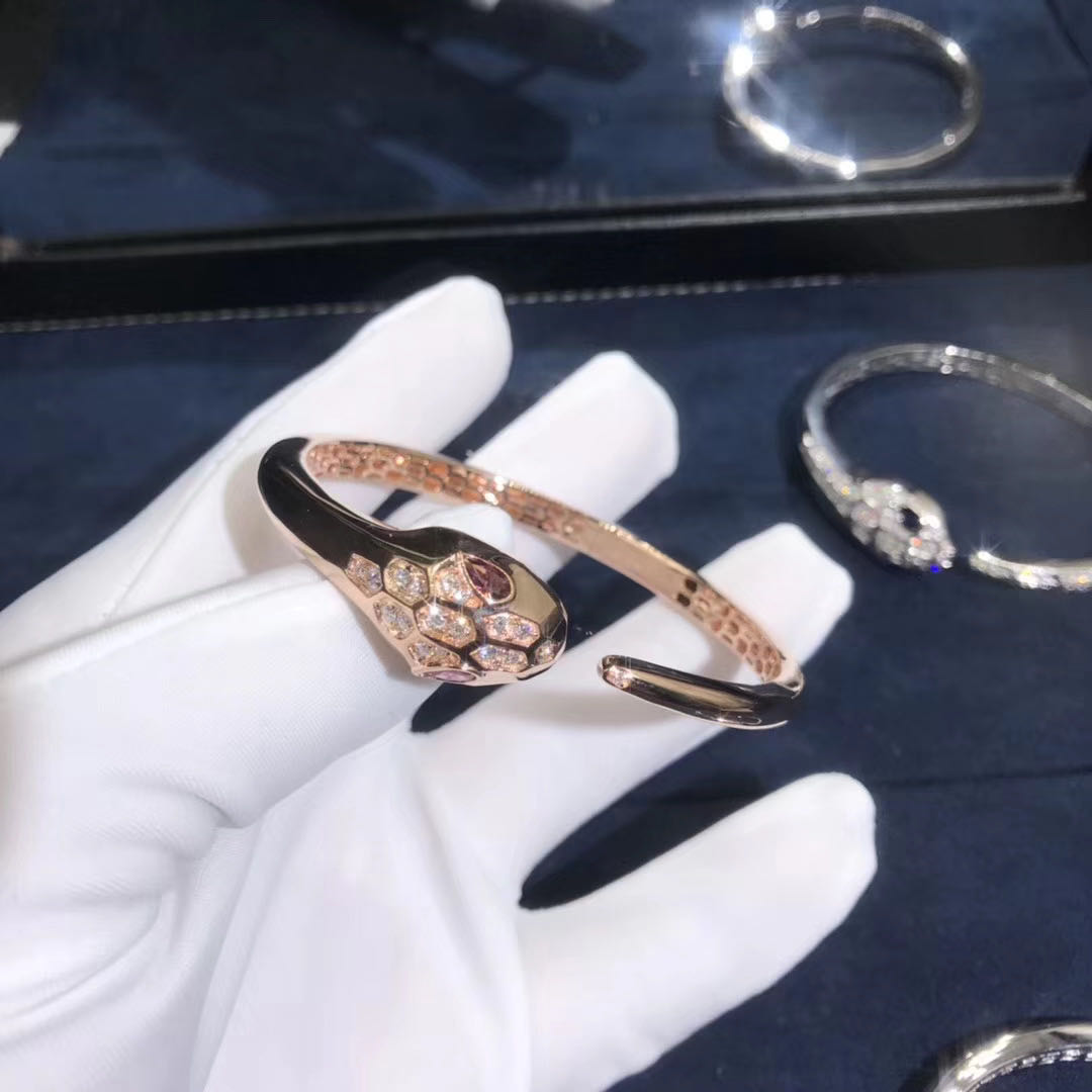 Bvlgari Serpenti bracelet in 18kt rose gold set with rubellite eyes and diamond