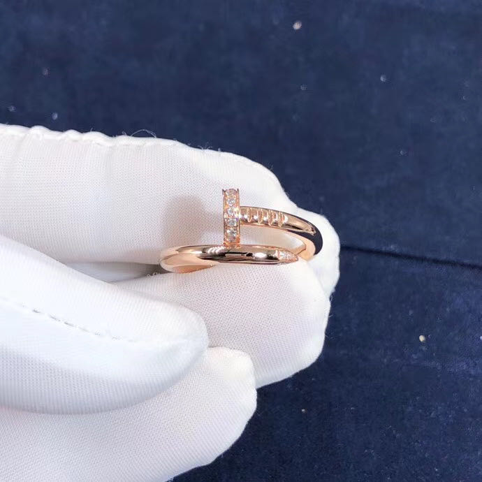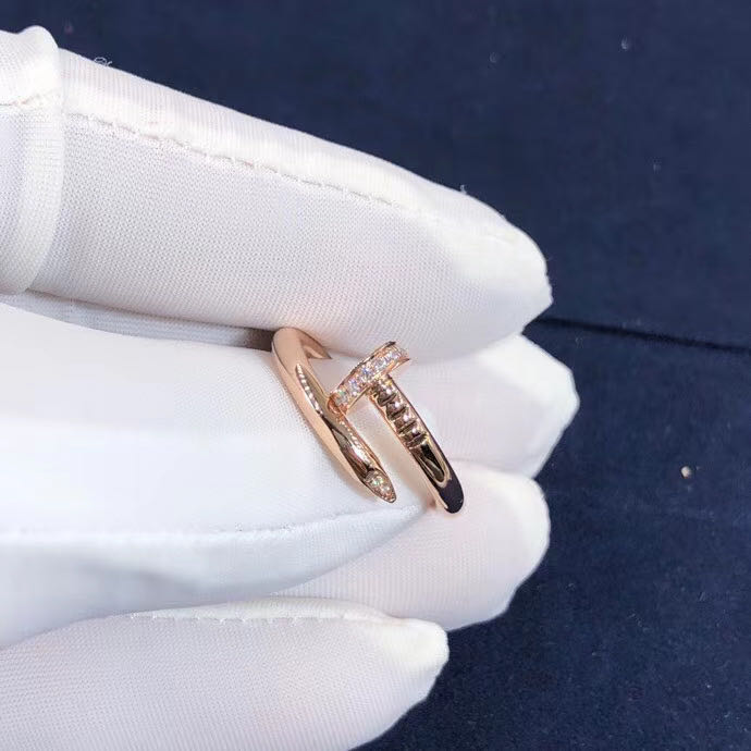 The Juste Un Clou collection from Cartier is all about making ordinary objects into exquisite pieces of jewellery, and it would be fair to say that this ring is truly beyond precious. It is a creation that proudly represents the expertise and talent of the artisans working with Cartier to deliver to you only the very best. The ring is sculpted from 18k rose gold into a smooth coiled nail set with brilliant-cut diamonds totalling 0.13 carat along with signature engravings neatly adorned on it. This beautiful ring will grant your elegant outfits a touch of luxury and panache.