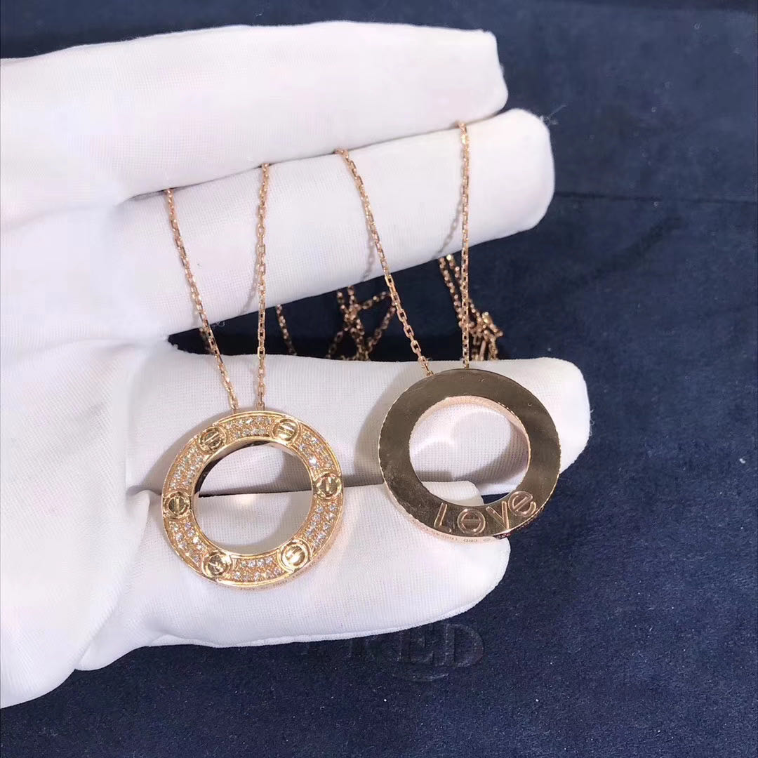 A token that represents everlasting feeling, this 18-karat white gold necklace from Cartier is part of the Love collection first designed in the 1970s. Imbued with New York nostalgia, it is studded with the iconic screw motifs and 54 brilliant-cut diamonds in a pave setting playing on the eternal theme with a circular pendant at the center of the delicate chain necklace.