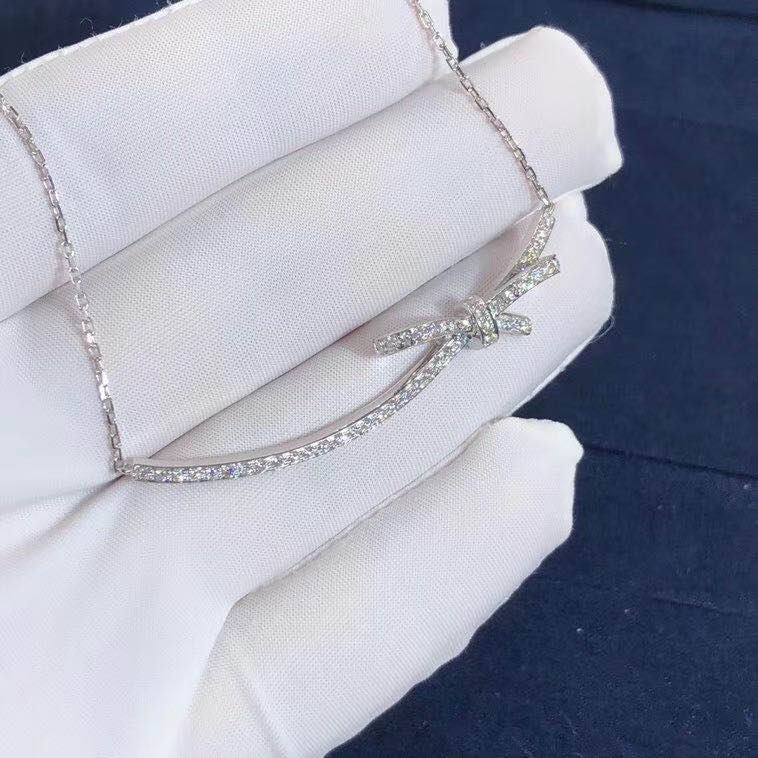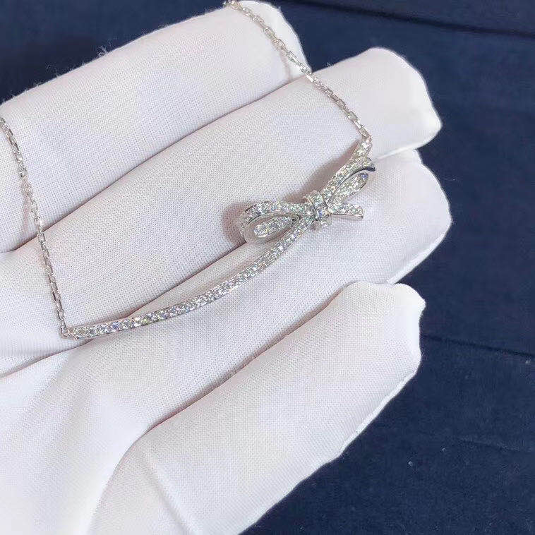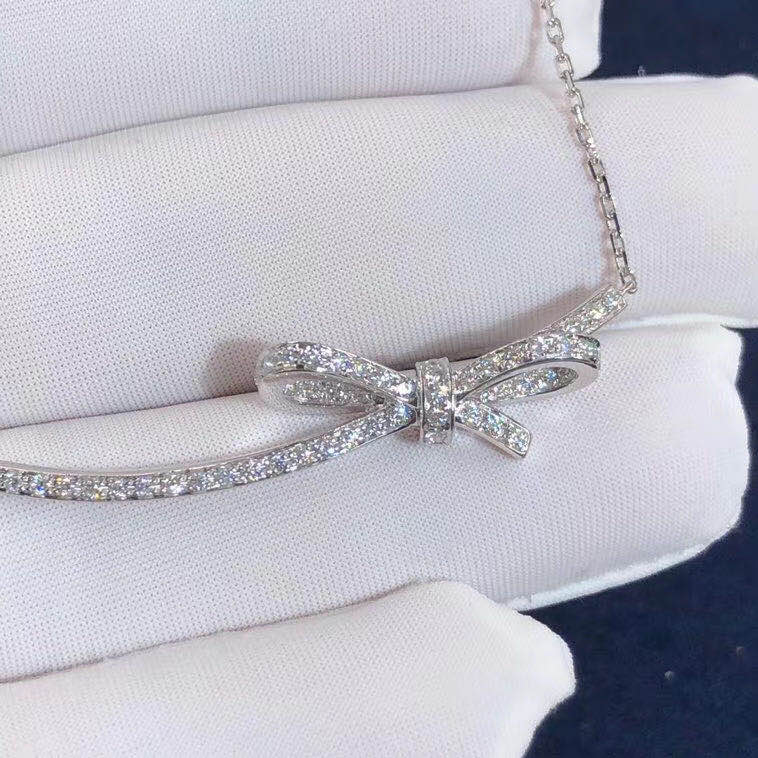 Chanel Ruban Necklace 18K White Gold Full Diamond Bow Style