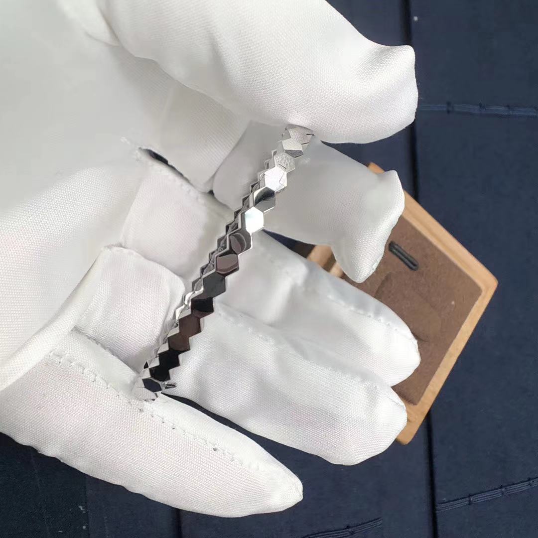 Chaumet’s new Bee My Love collection is inspired by the structure of a beehive and features pretty diamond rings bearing a distinctive hexagonal shape. The Bee My Love engagement ring in yellow gold is a classic solitaire diamond ring with a twist. The geometric design means that it can be stacked with a Bee My Love wedding band and eternity ring, with or without diamonds, to create a honeycomb of jewels. The bee has become something of an icon at the Parisian jewelry house. It has appeared on many Chaumet jewels over the years, and this latest range of stackable Bee My Love jewelry continues the tradition in ultra-contemporary style.