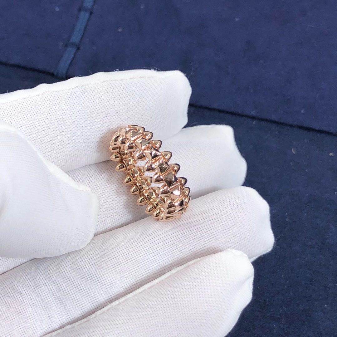 Defying all conventional notions of architecture and shapes, the Clash de Cartier collection shakes up three of the Maison’s historic jewellery signatures – the Picot, Clou Carré and Beads – joining them together to form a singular, ribbed mesh design. Soft curves and contours contrast with clean, sharp lines to create this elegant yet rule-breaking ring in 18-karat rose gold.
