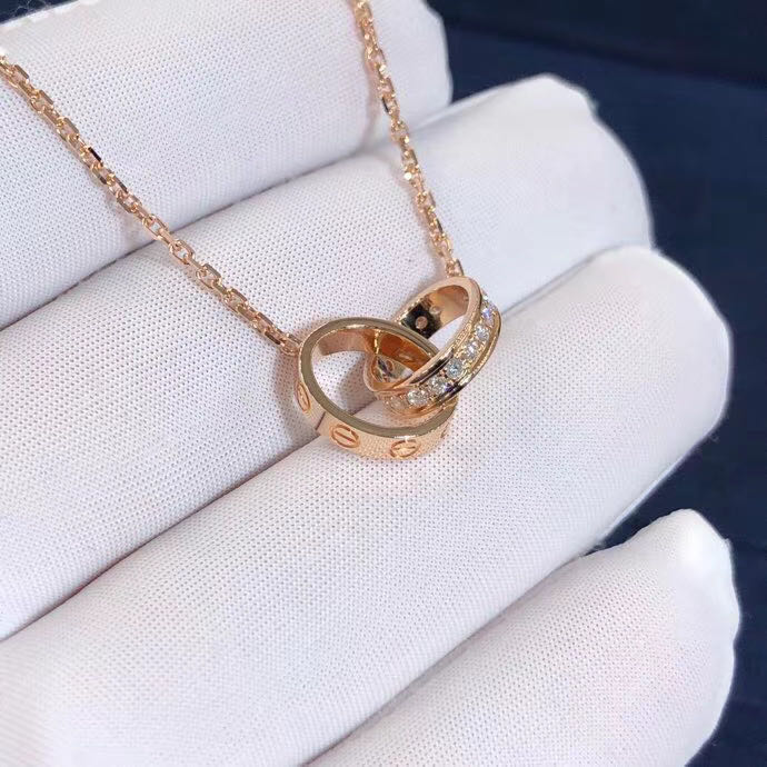 Love necklace, 18K yellow gold, set with 18 brilliant-cut diamonds totaling 0.22 carat, can do in 18K white/yellow/rose gold.