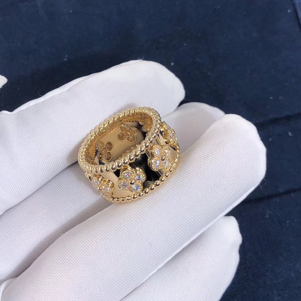 This preoved Van Cleef & Arpels Perlée clovers ring, large model is crafted from Yellow gold, Diamond.