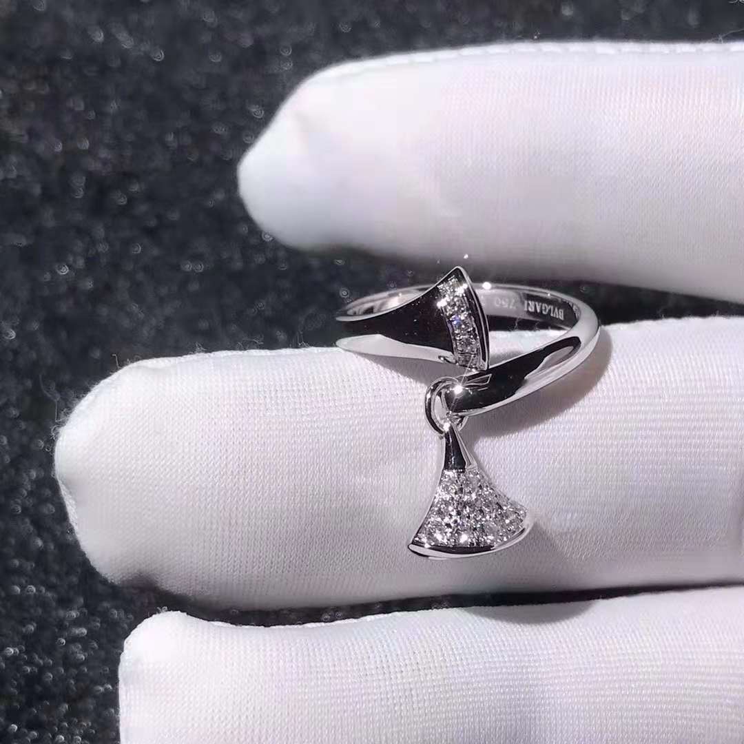 Bvlgari Divas Dream Ring 18k White Gold with Diamonds - Inspired by feminine elegance and by the enchanting allure of the eternal city, the <strong>DIVAS' DREAM ring</strong> pays homage to the most glamorous divas with an unmistakable Roman spirit. Quintessentially feminine and refined, the ring is sculpted capturing the magnificence of the Caracalla Baths marble and the sensual curves of its fan-shaped mosaics, reflecting the very essence of Italian beauty.