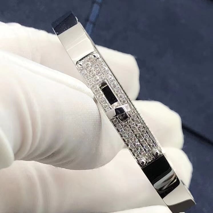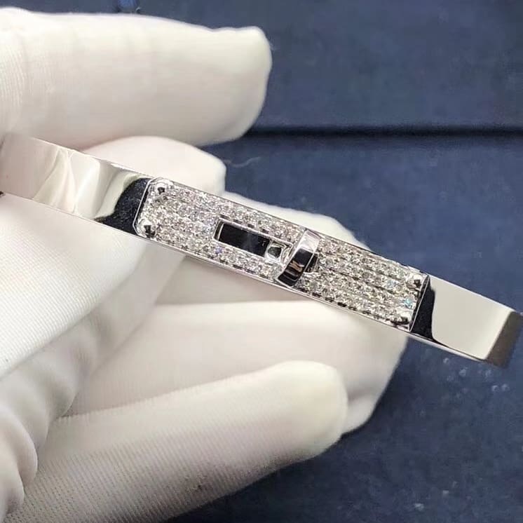 Hermes Kelly bracelet in 18 karat white gold in size Large encrusted with 57 diamonds (0.33ct).
