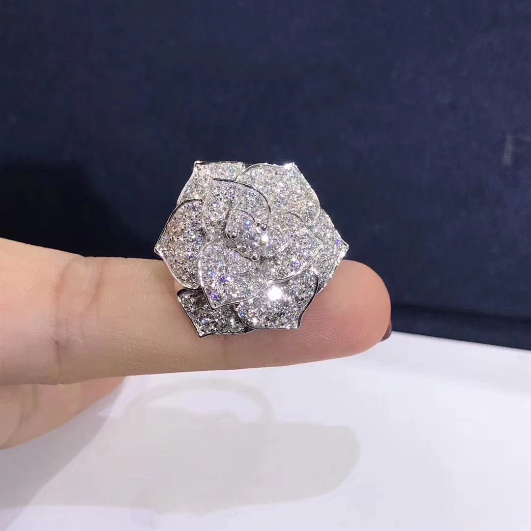 There’s magic in the Garden of Piaget, where a rose reigns supreme. This ring, inspired by the Yves Piaget rose and featuring stylized petals entirely paved with diamonds, takes nature to new heights. It is a precious bloom that succeeds in creating the illusion of a real flower, a diamond beating at its heart.