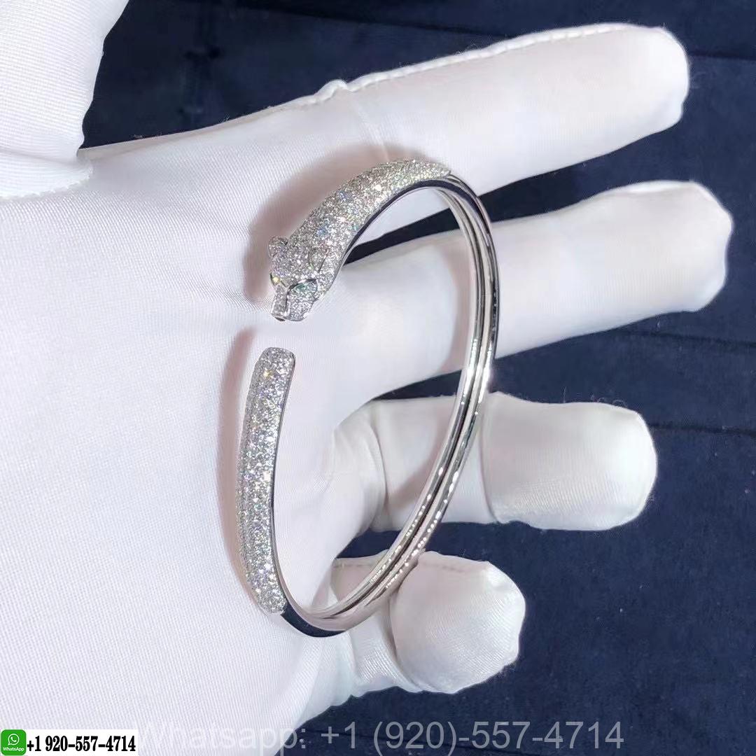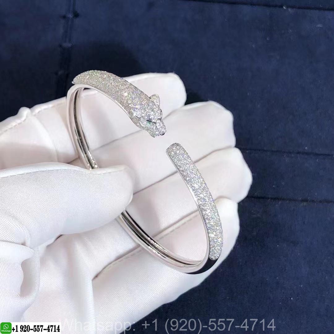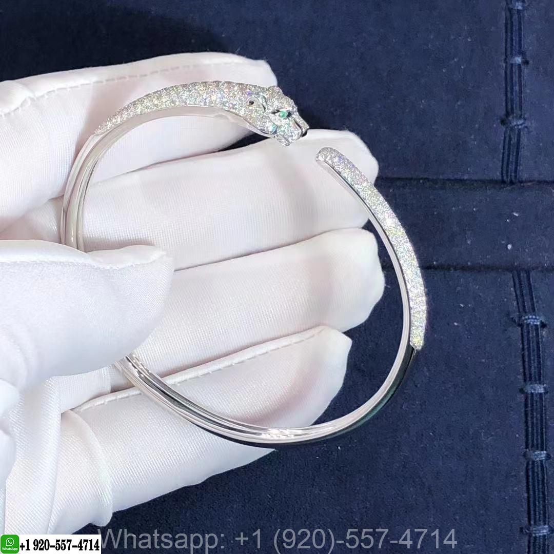 Panthère de Cartier bracelet, 18K white gold, onyx, emeralds, brilliant-cut diamonds.