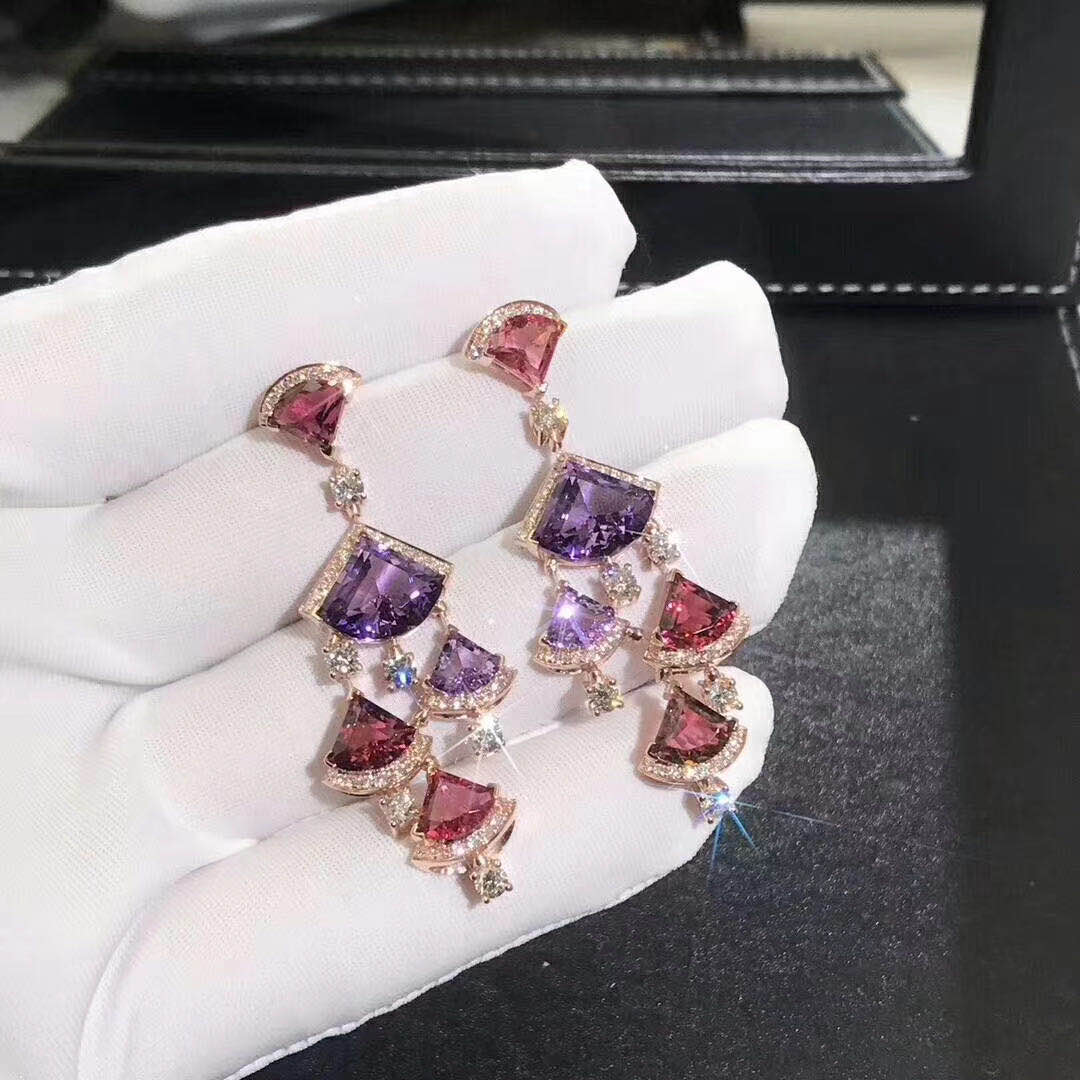 Designer Bvlgari Divas’ Dream earrings in 18kt rose gold with pink rubellite, amethyst and pavè diamonds