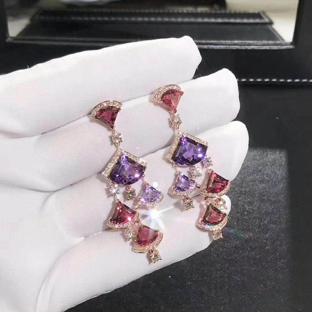 » 18K Gold Earrings » Designer Bvlgari Divas’ Dream earrings in 18kt rose gold with pink rubellite, amethyst and pavè diamonds