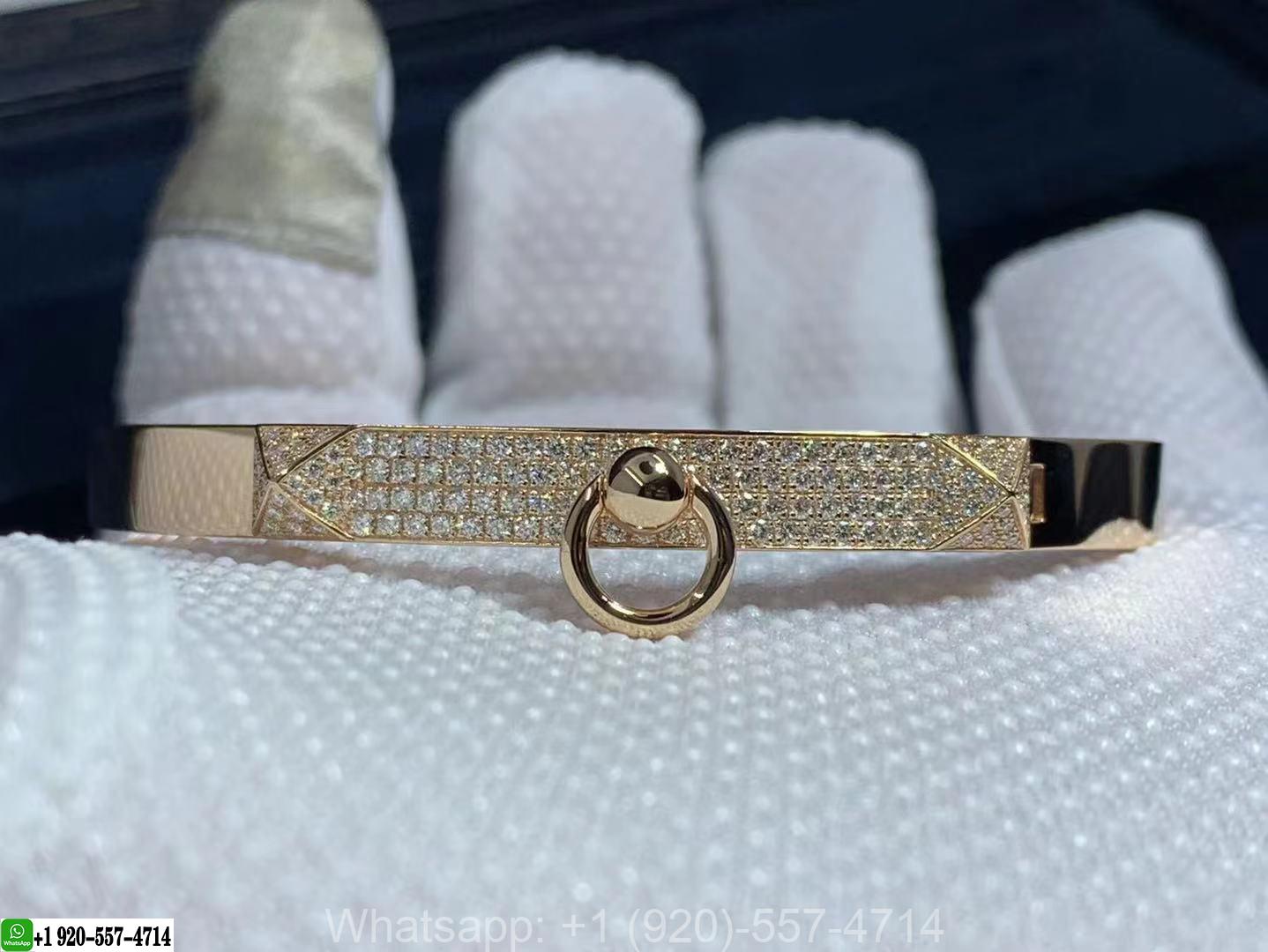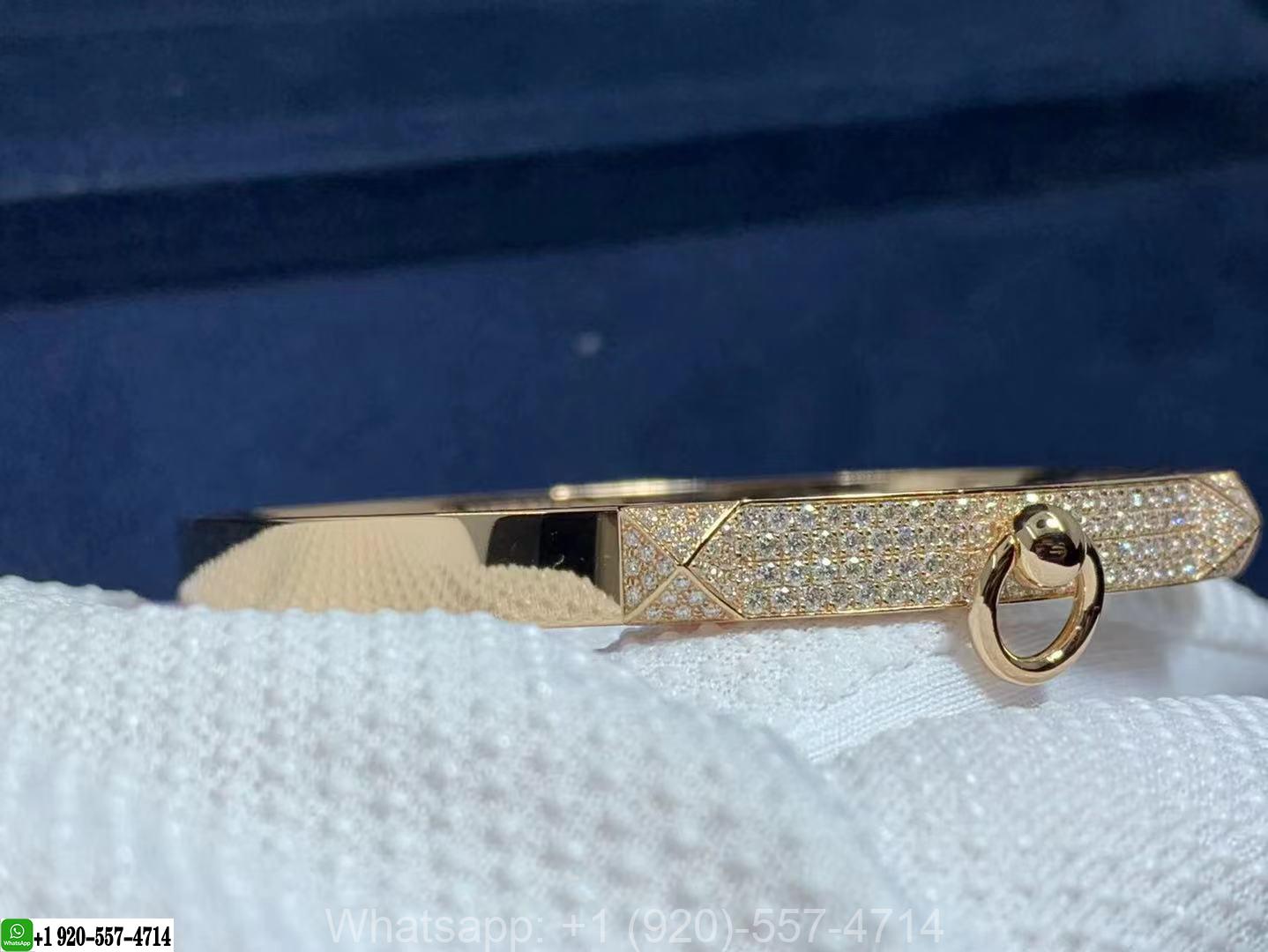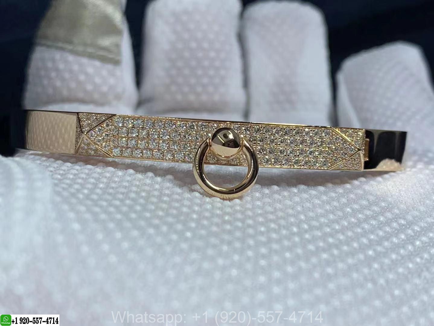 At the beginning of the 20th century, Hermès offered extraordinary dog collar collections to its refined clientele who were offered a version with trinkets, maybe one with its precious leathers or another with its streamlined studs. Designed to protect hunting dogs elegantly, these collars inspired the house to create a belt adorned with domed, four-sided studs and a ring. Its pure lines and volume later gave rise to the Collier de chien bracelet.