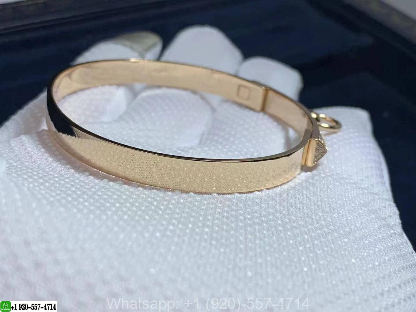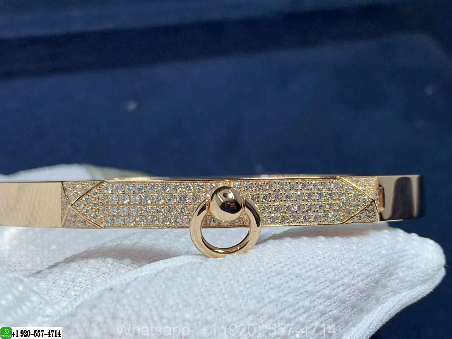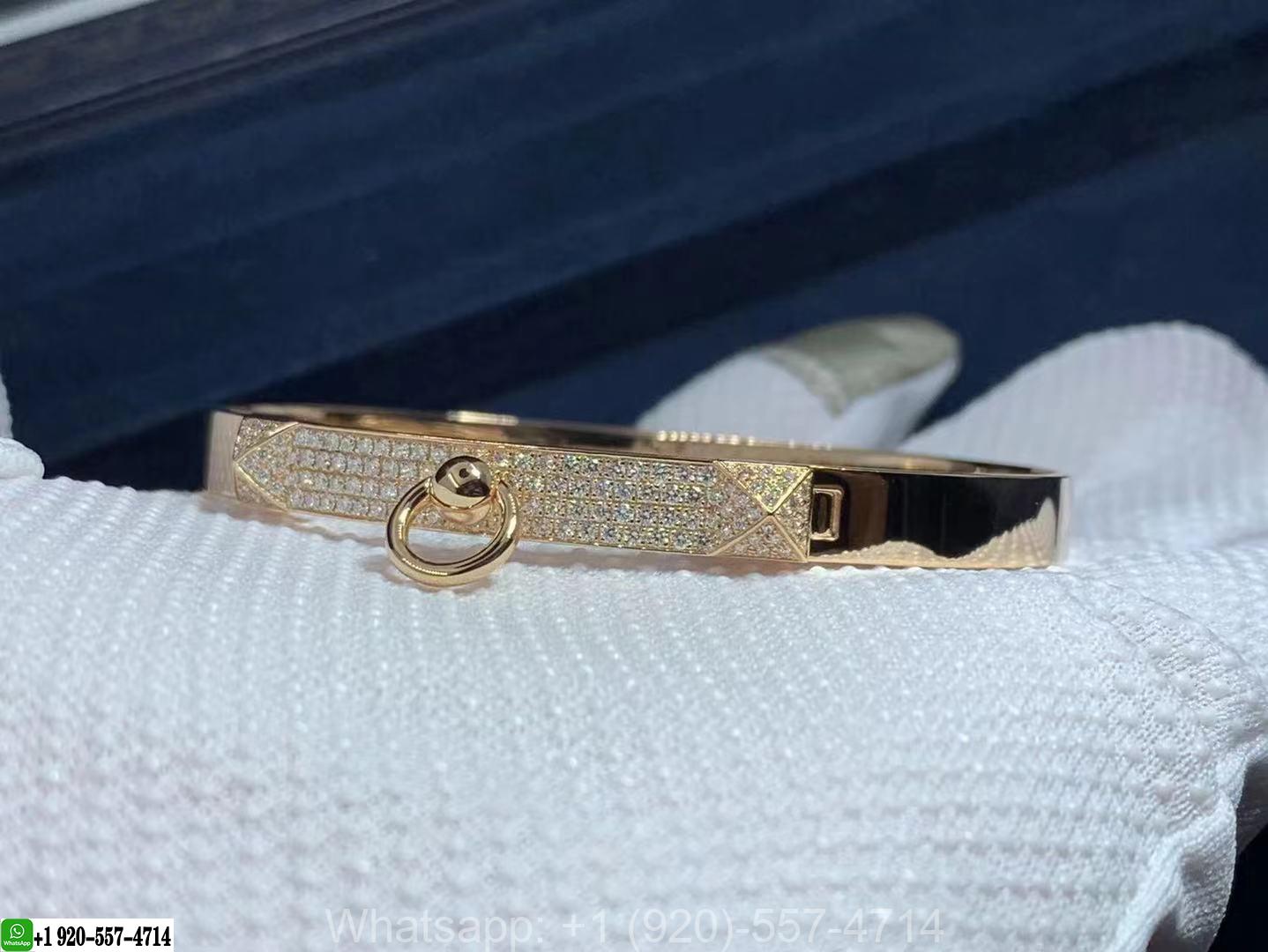 At the beginning of the 20th century, Hermès offered extraordinary dog collar collections to its refined clientele who were offered a version with trinkets, maybe one with its precious leathers or another with its streamlined studs. Designed to protect hunting dogs elegantly, these collars inspired the house to create a belt adorned with domed, four-sided studs and a ring. Its pure lines and volume later gave rise to the Collier de chien bracelet.