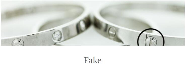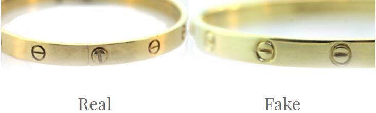 When you review the authentic Cartier Love bracelet real gold, the edges are crisp and precise. The screws should turn easily with the screwdriver. When you see a replica Cartier Love bracelet solid gold, the sides have a curvature that makes it appear more round. The screws are also much more difficult to open.