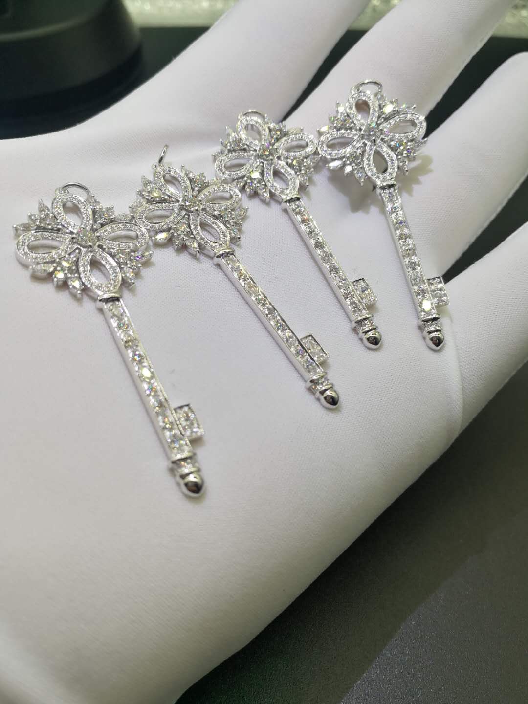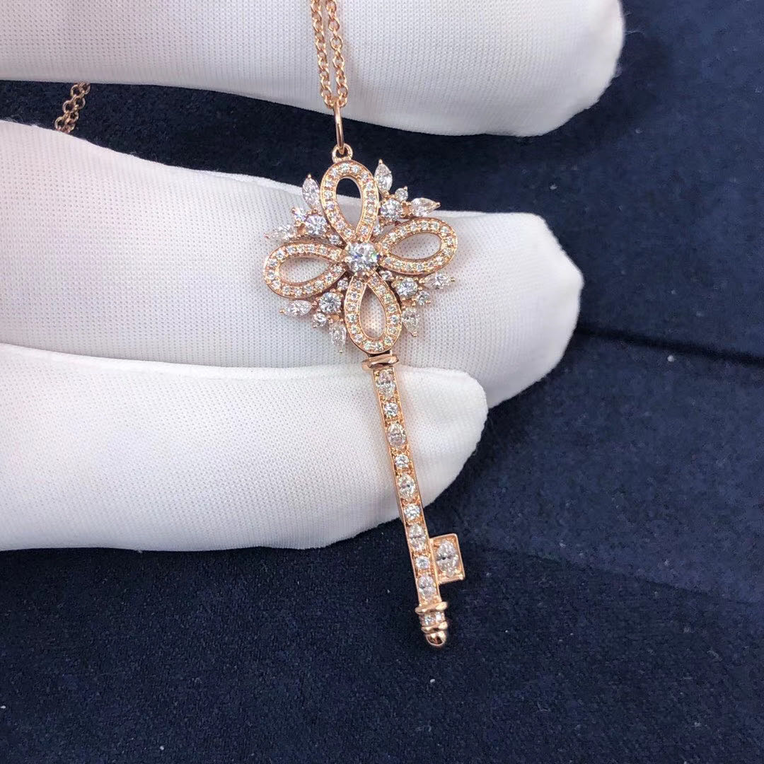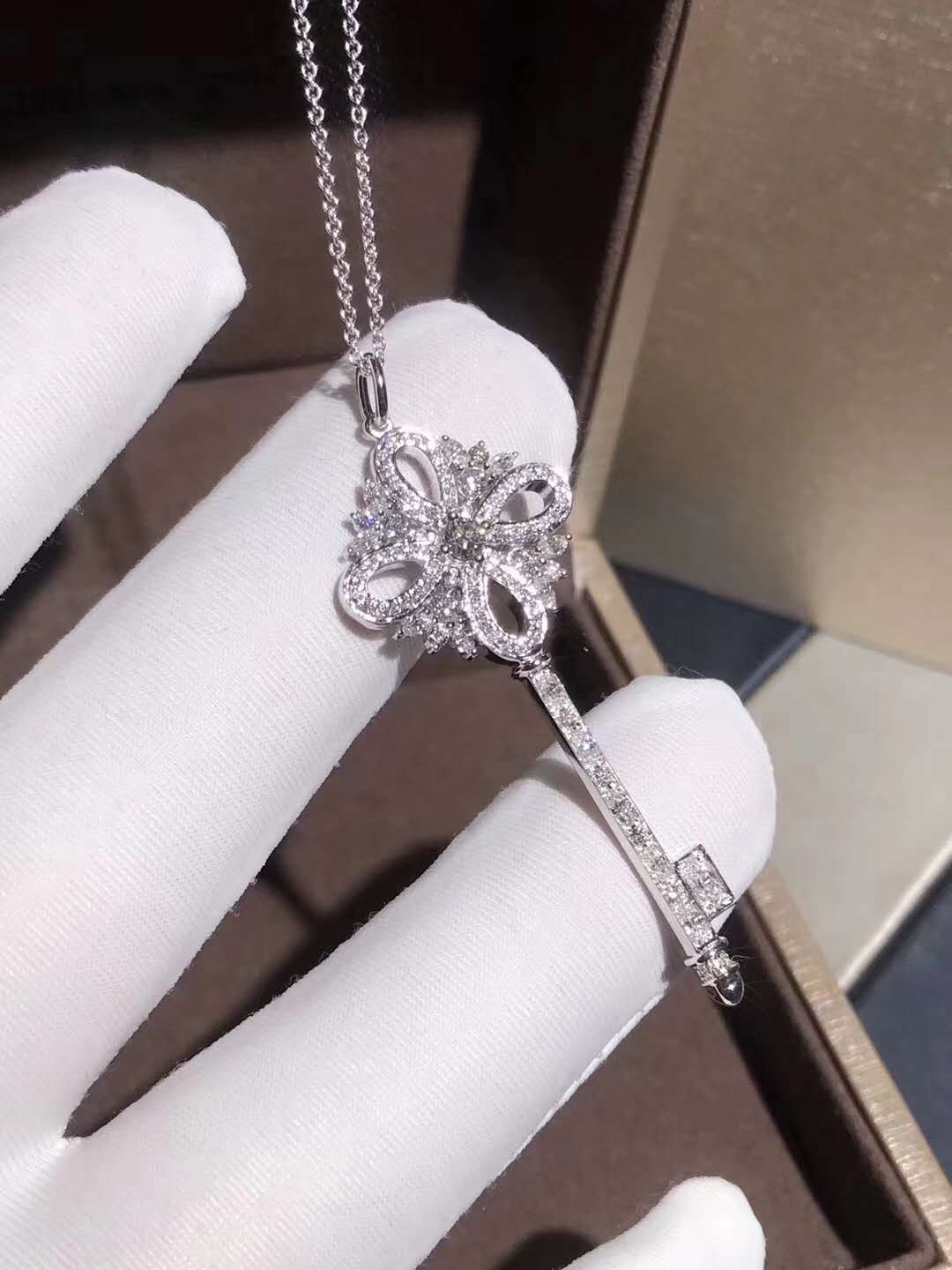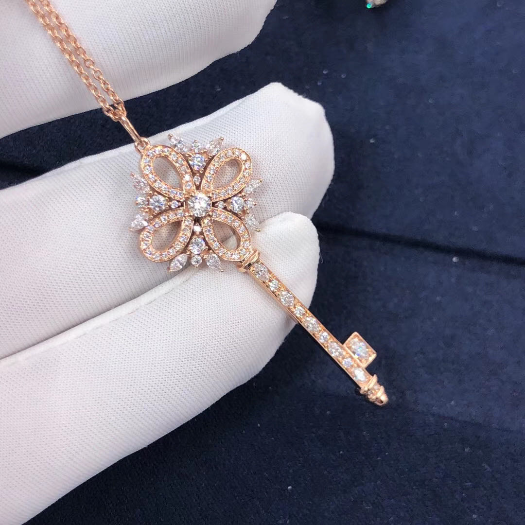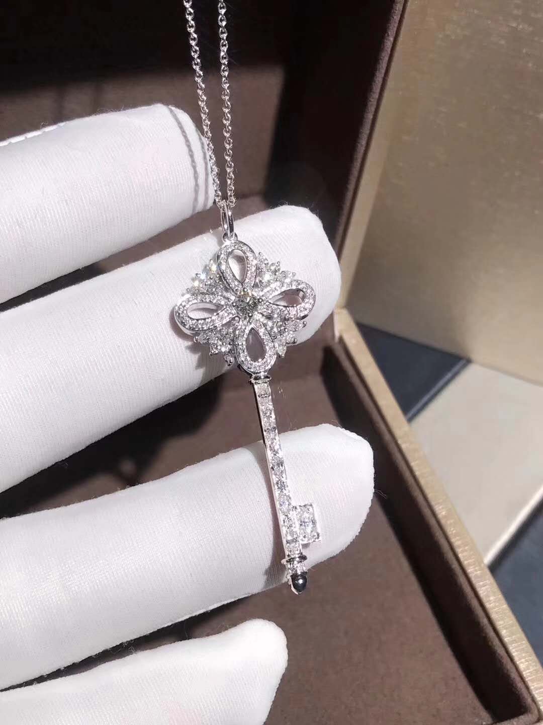 Inspired Tiffany Victoria Key Pendant Platinum with diamonds