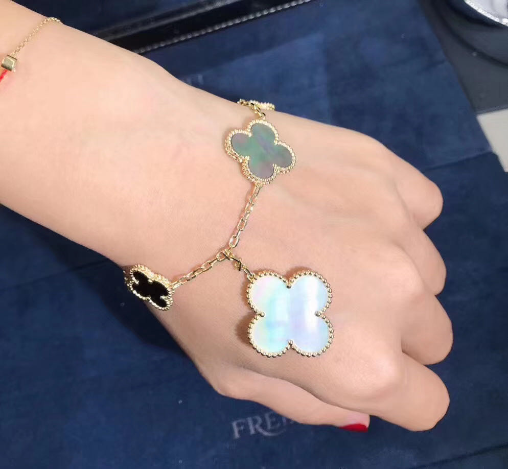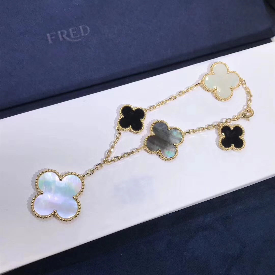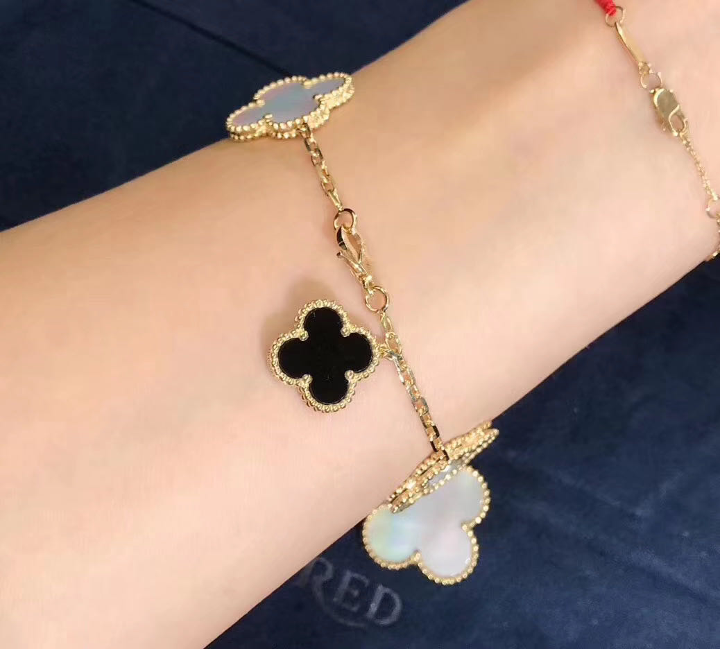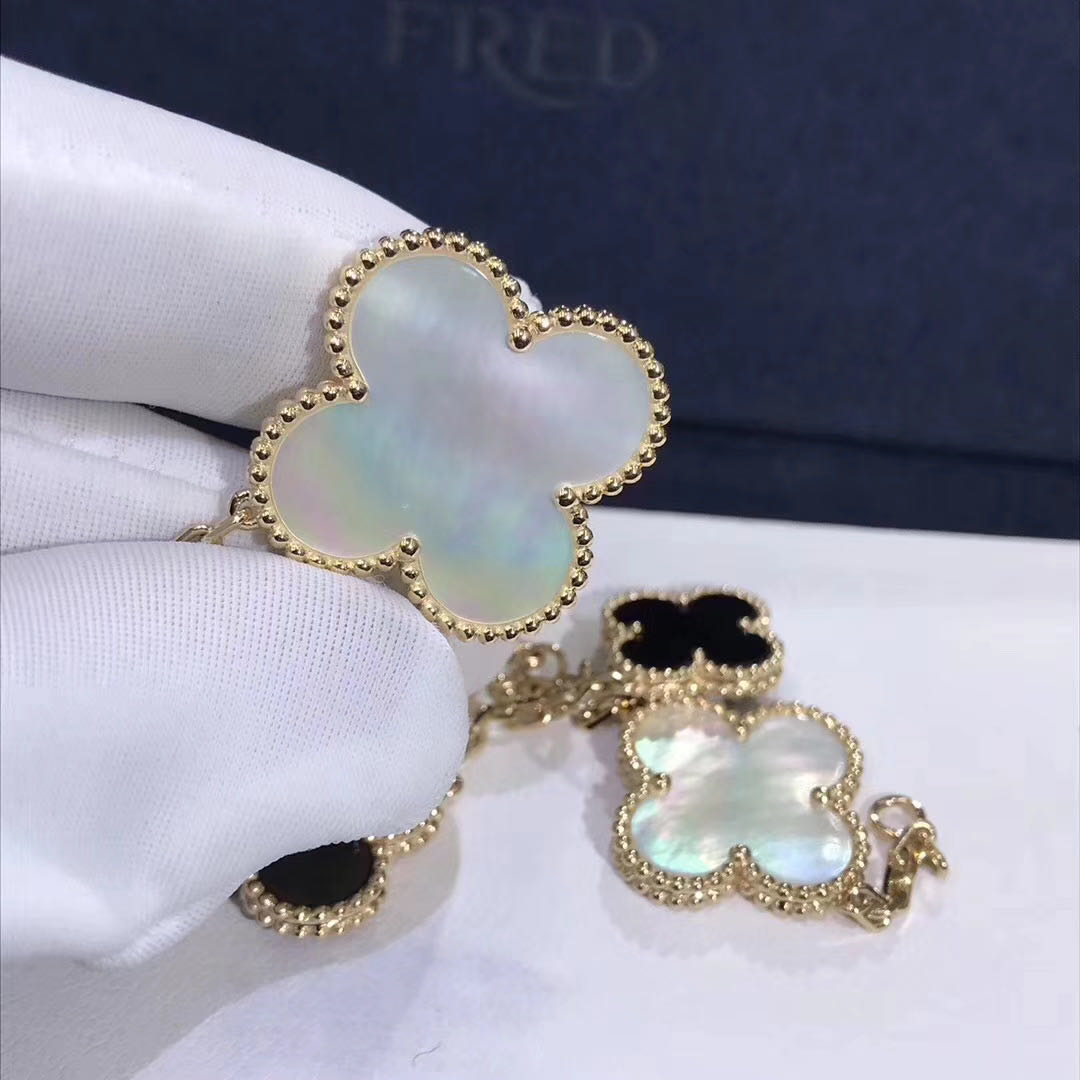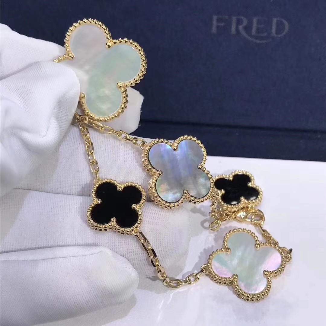 Real Van Cleef & Arpels Magic Alhambra bracelet, 5 motifs Yellow gold, Mother-of-pearl, Onyx