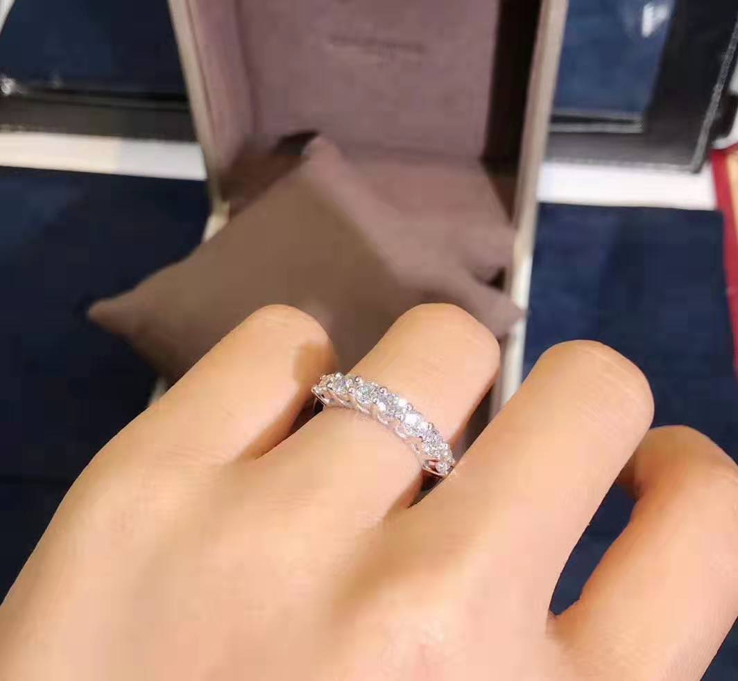 Tiffany Embrace Band ring in platinum with a half circle of round brilliant diamonds.