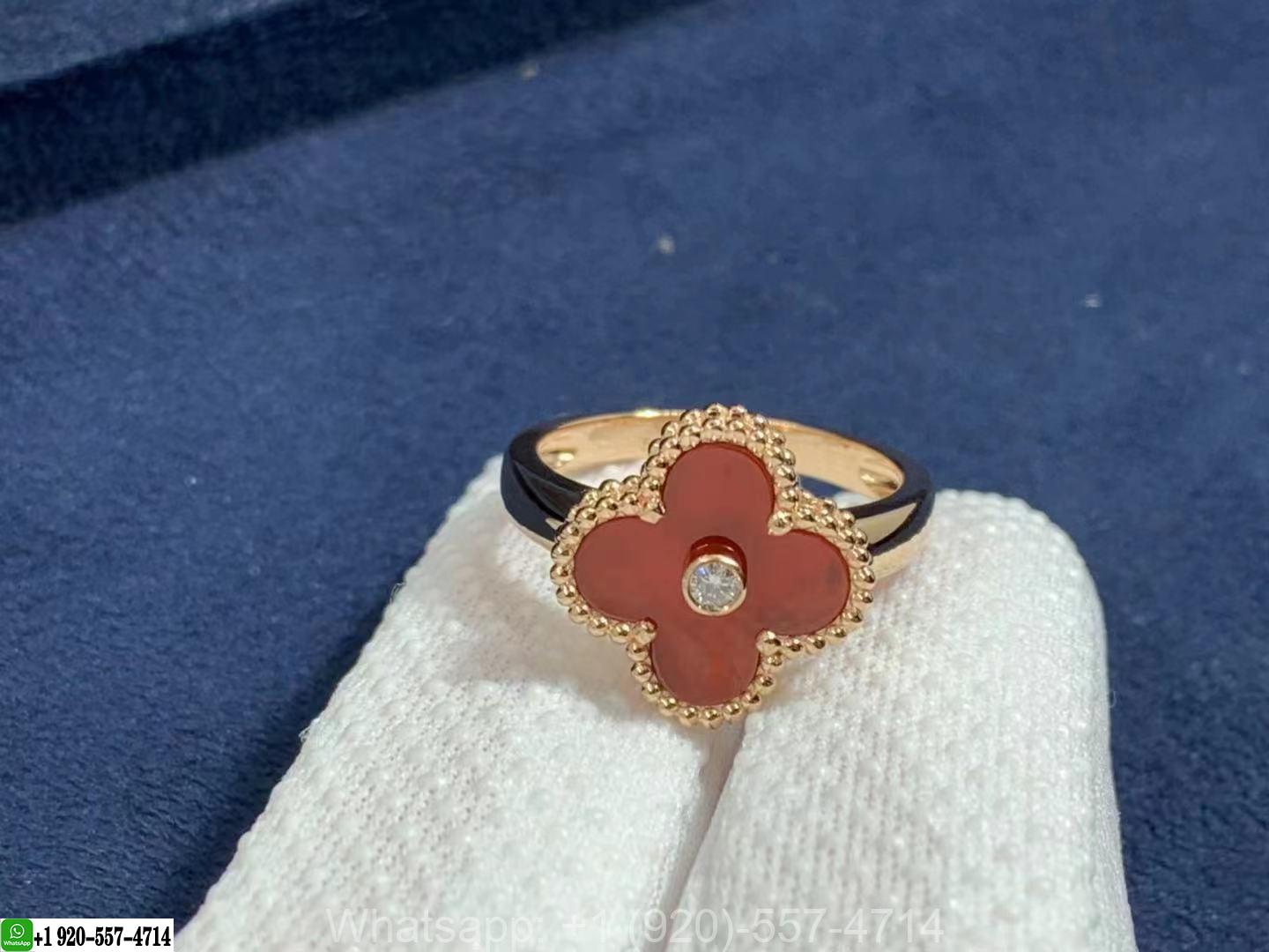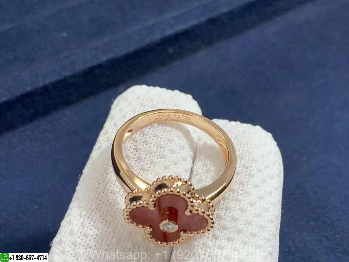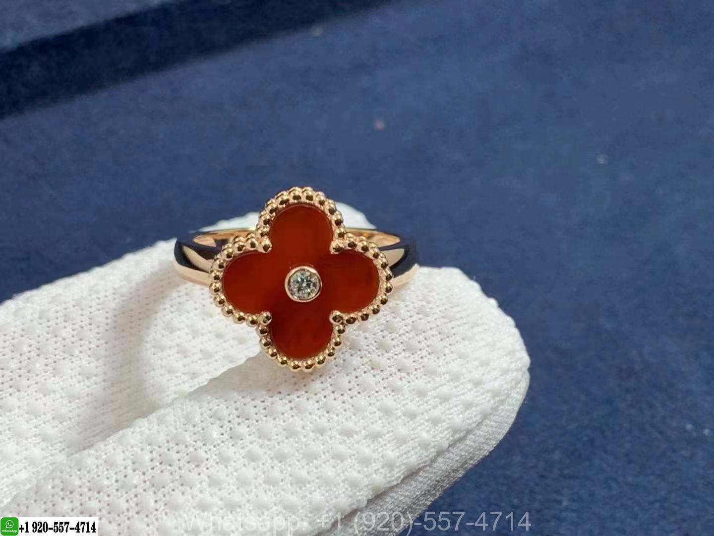 » 18K Gold Rings » Van Cleef & Arpels 18K Rose Gold Carnelian & Diamond Vintage Alhambra Ring