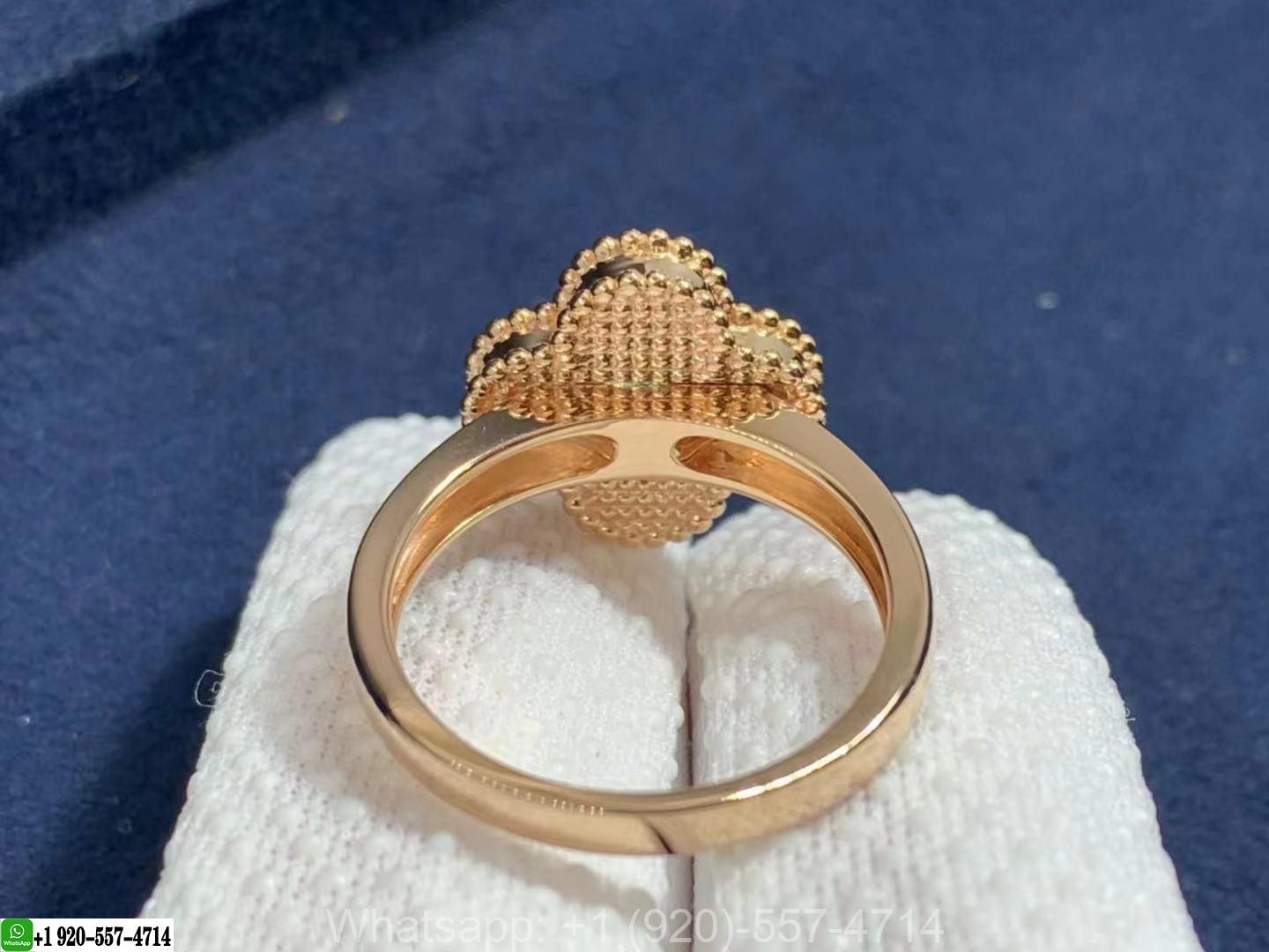 Van Cleef & Arpels 18K Rose Gold Carnelian & Diamond Vintage Alhambra Ring