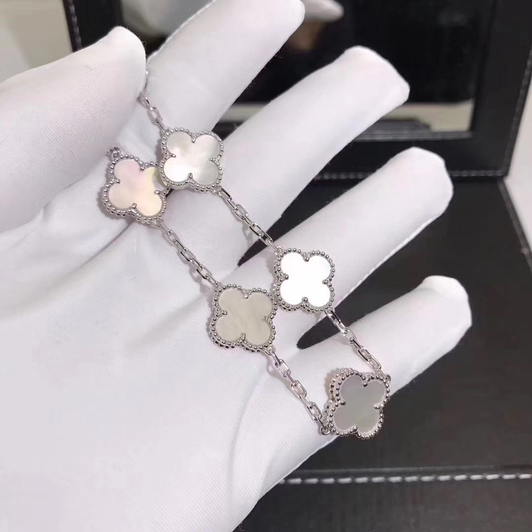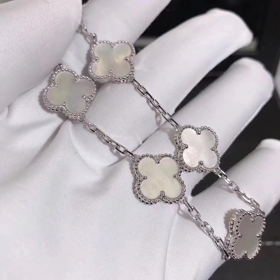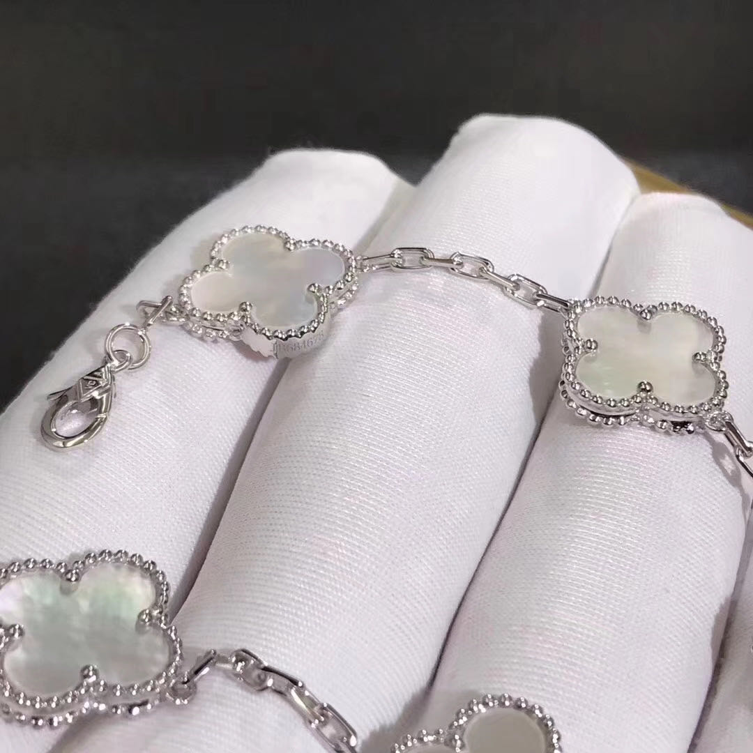 » 18K Gold Bracelets » Van Cleef & Arpels 18k White Gold 5 Motifs White Mother Of Pearl Vintage Alhambra Bracelet VCARF48400