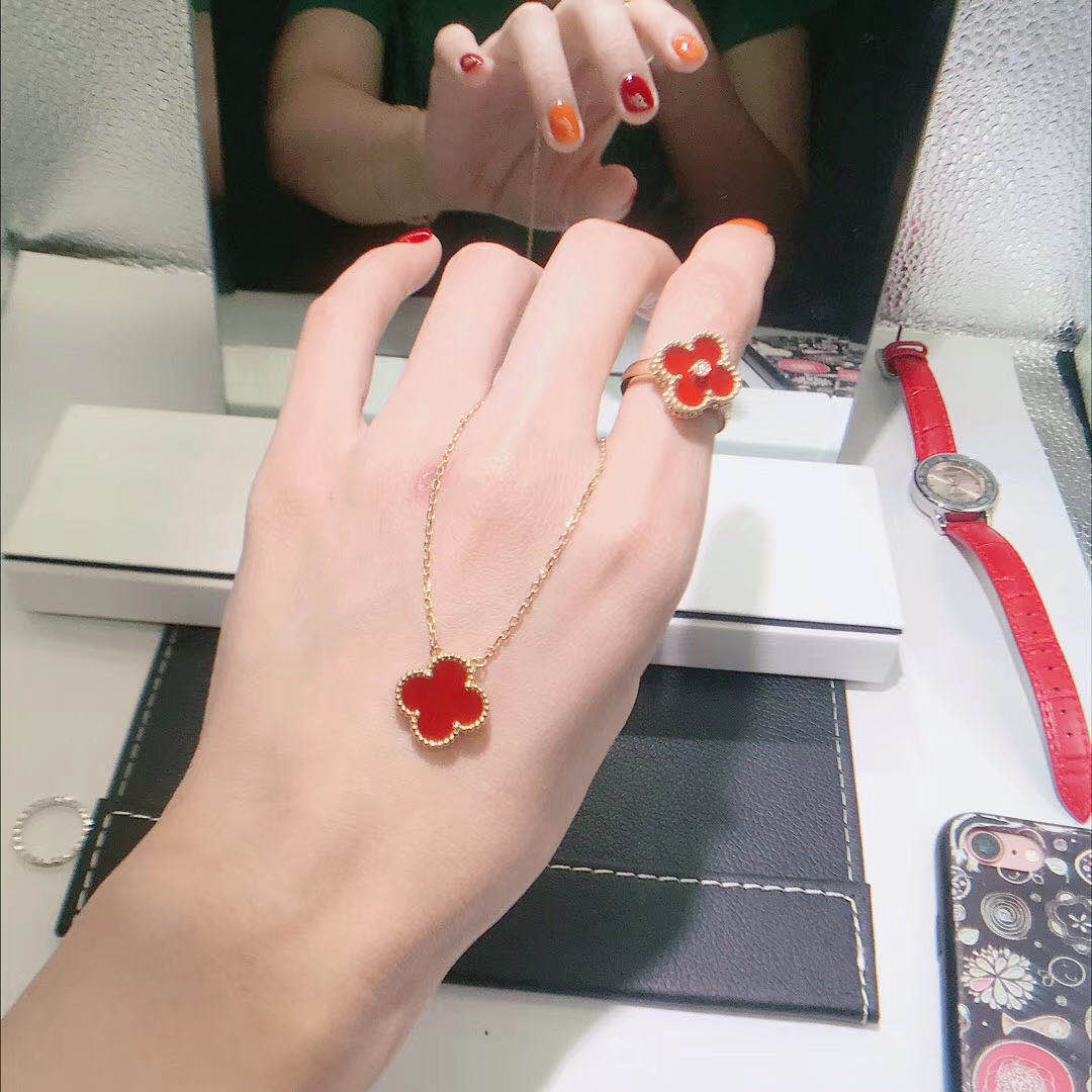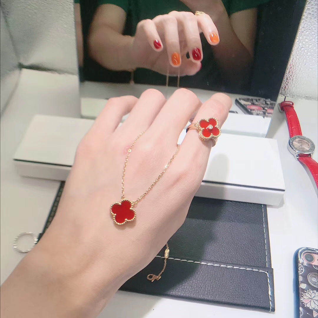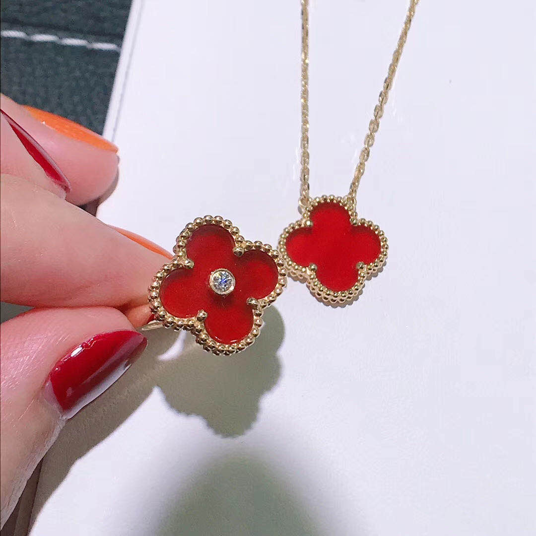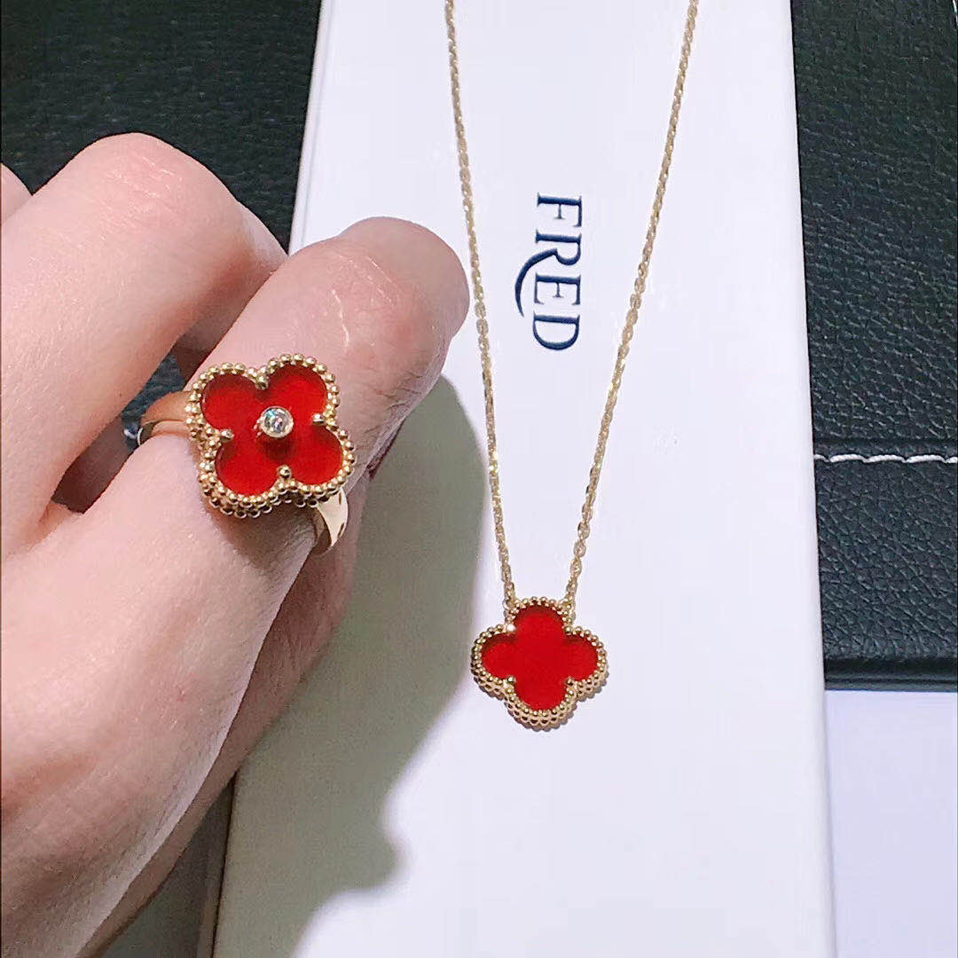 » 18K Gold Rings » Van Cleef & Arpels 18K Yellow Gold Carnelian Diamond Vintage Alhambra Ring VCARD40800