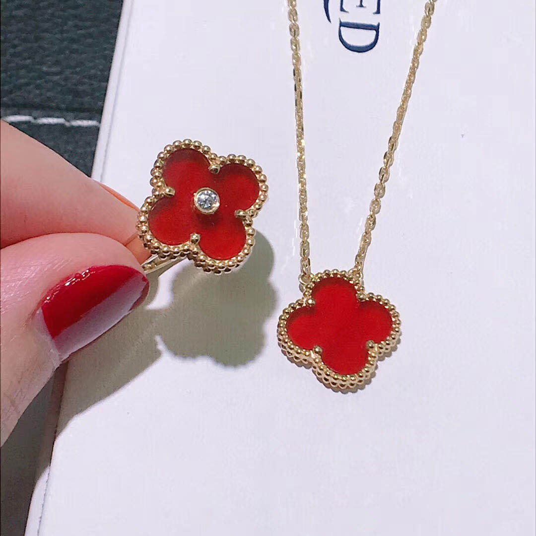 • Van Cleef & Arpels 18K Yellow Gold Carnelian Diamond Vintage Alhambra Ring VCARD40800