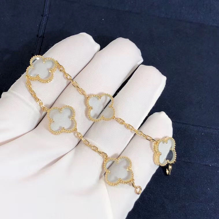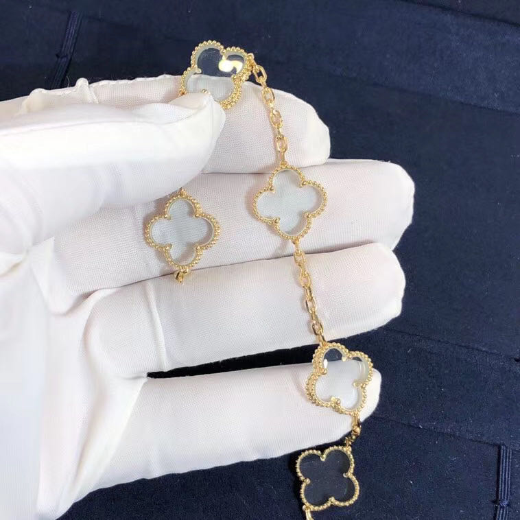 We are professional in custom-made real 18k gold jewelry for 10 years. We have more than 5000+ customers. You will get a wholesale price with High quality Van Cleef & Arpels jewelry, like Van Cleef & Arpels 18K Yellow Gold Vintage Alhambra Rock Crystal 5 Motifs Bracelet customized product. Also, we have professional after-sale services to support 7*24 hours of service. Wherever you are, the jewelry can be delivered via DHL, includes free gift box.