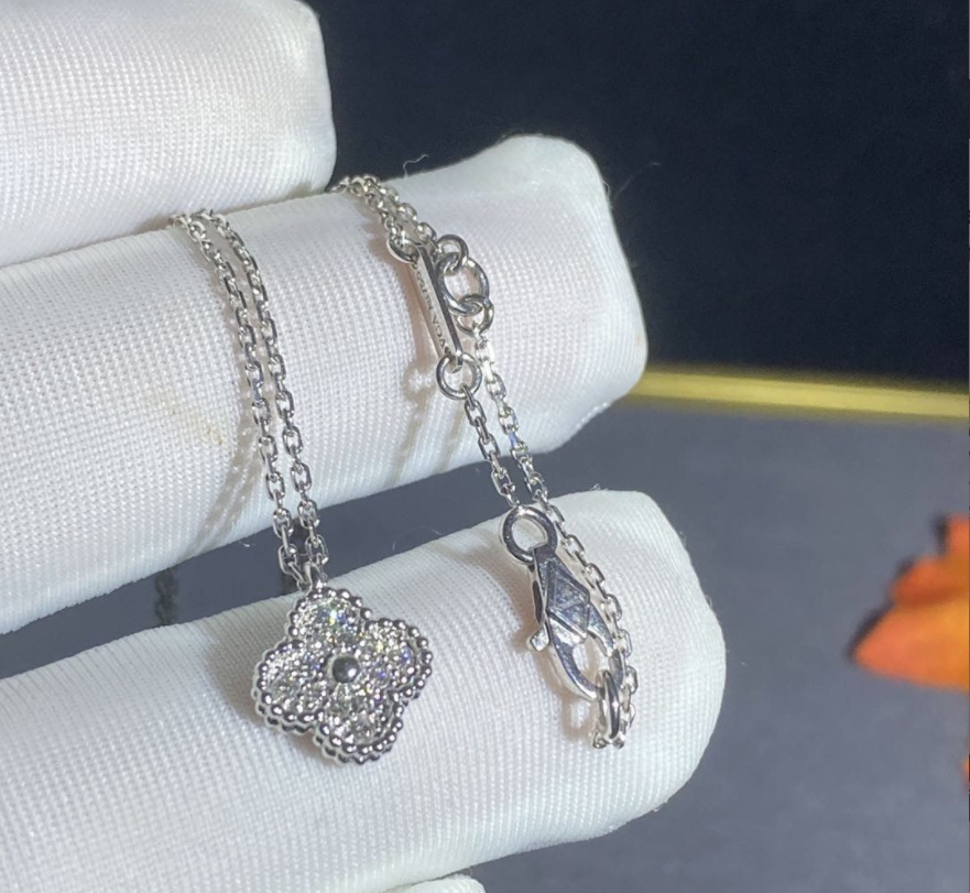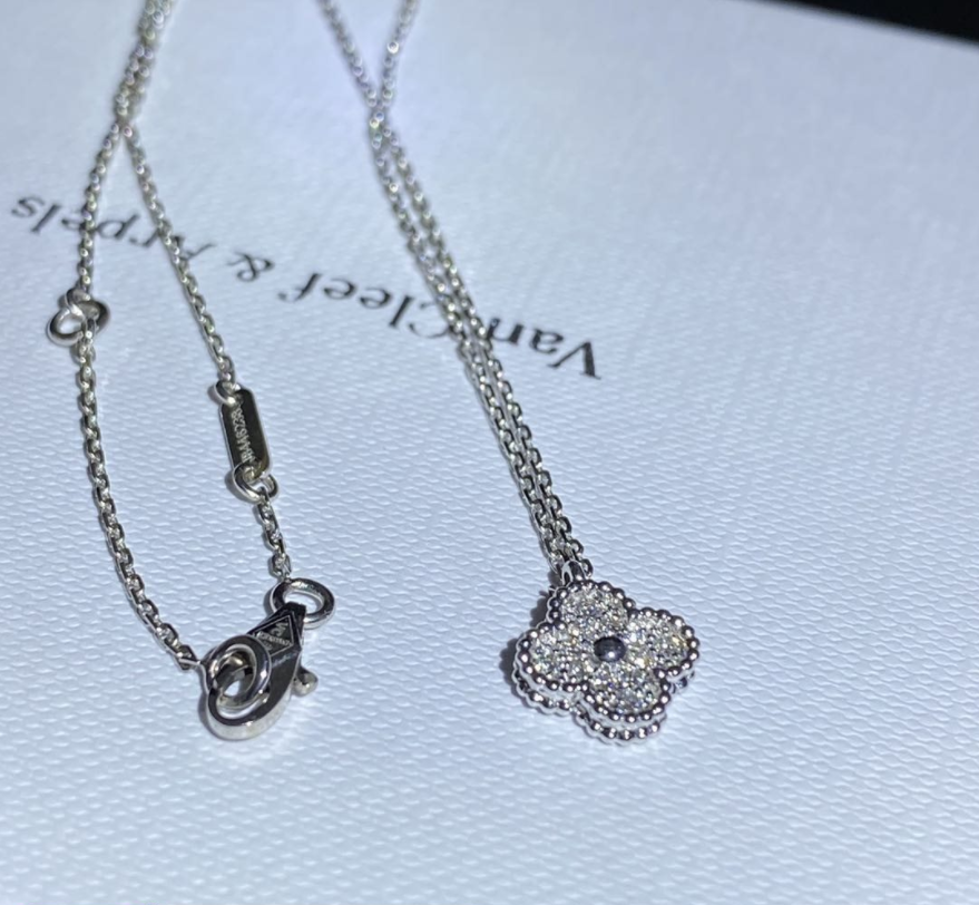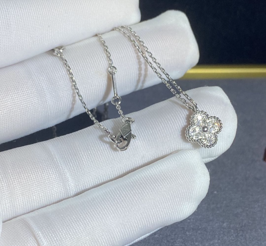 Sweet Alhambra pendant, white gold, round diamonds; diamond quality DEF, IF to VVS.