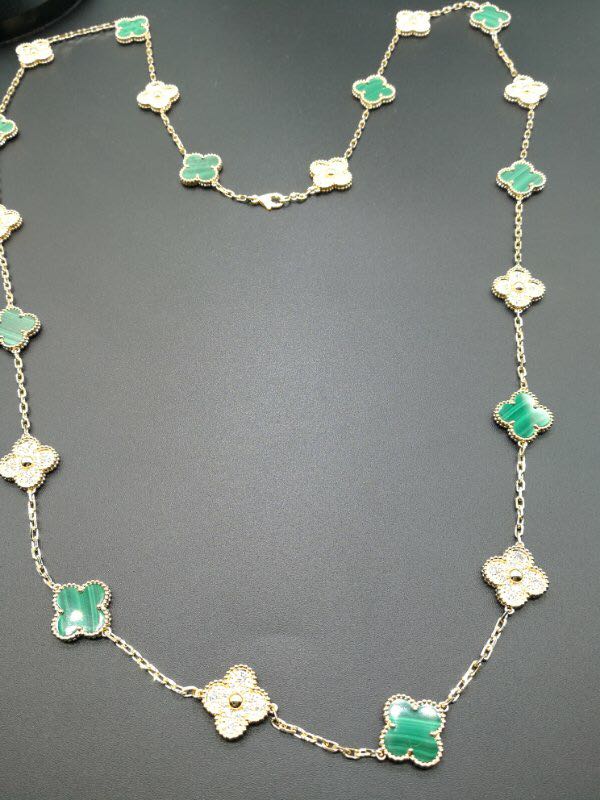 » 18K Gold Necklaces » Van Cleef & Arpels Vintage Alhambra necklace 20 motifs 18k yellow gold Diamond and Malachite