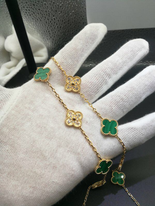 Van Cleef & Arpels Vintage Alhambra necklace 20 motifs 18k yellow gold Diamond and Malachite