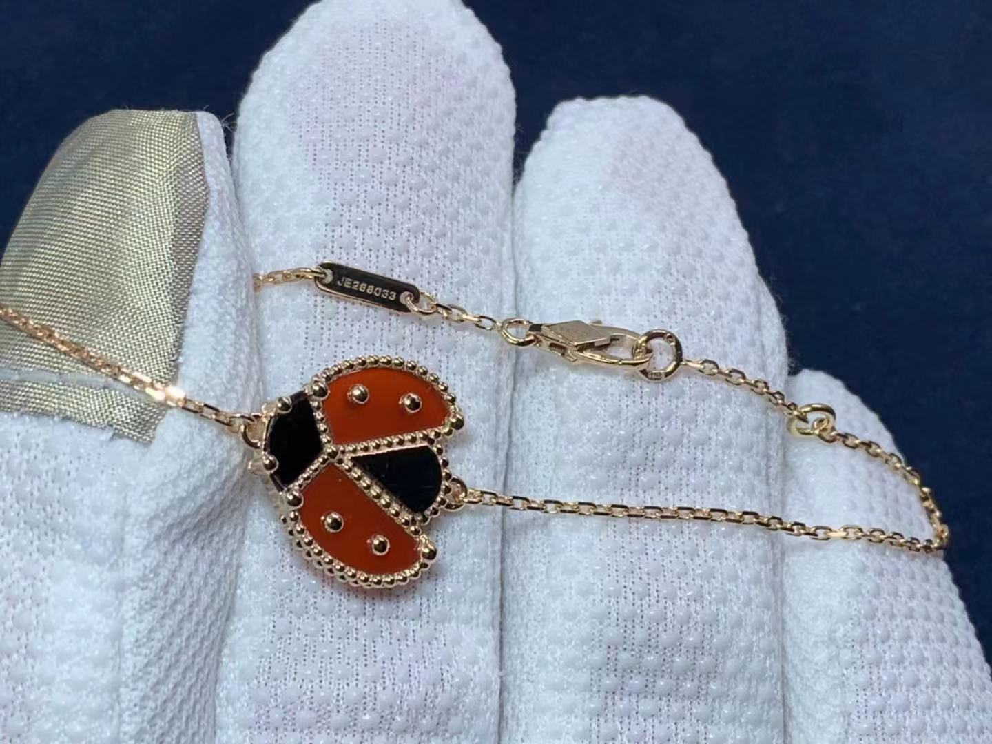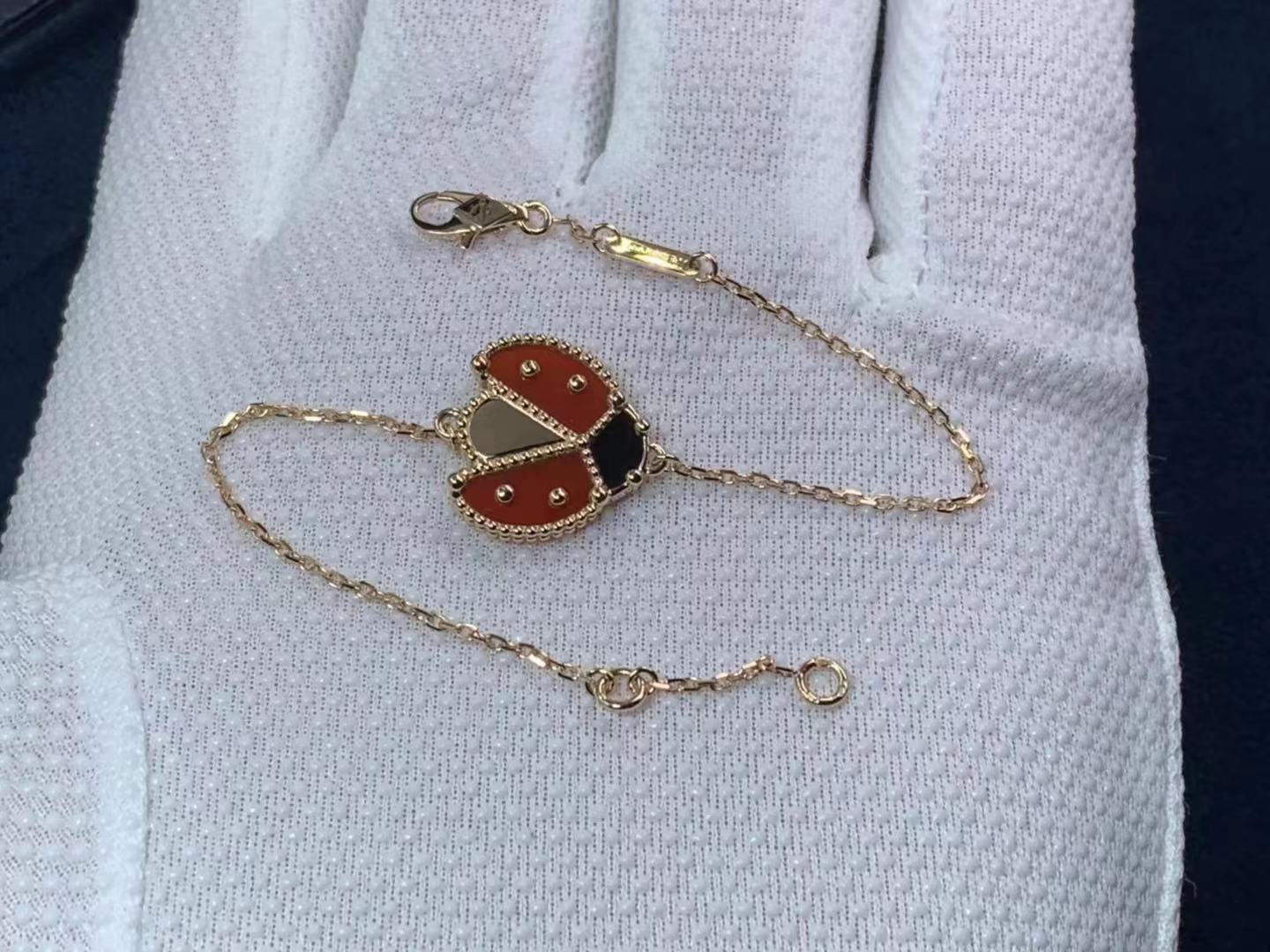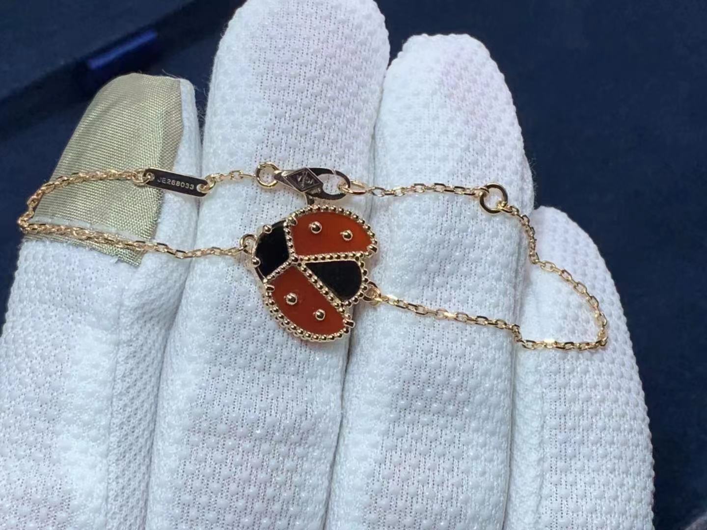 Van Cleef & Arpels Lucky Spring bracelet, open wings ladybug, rose gold, onyx, carnelian.